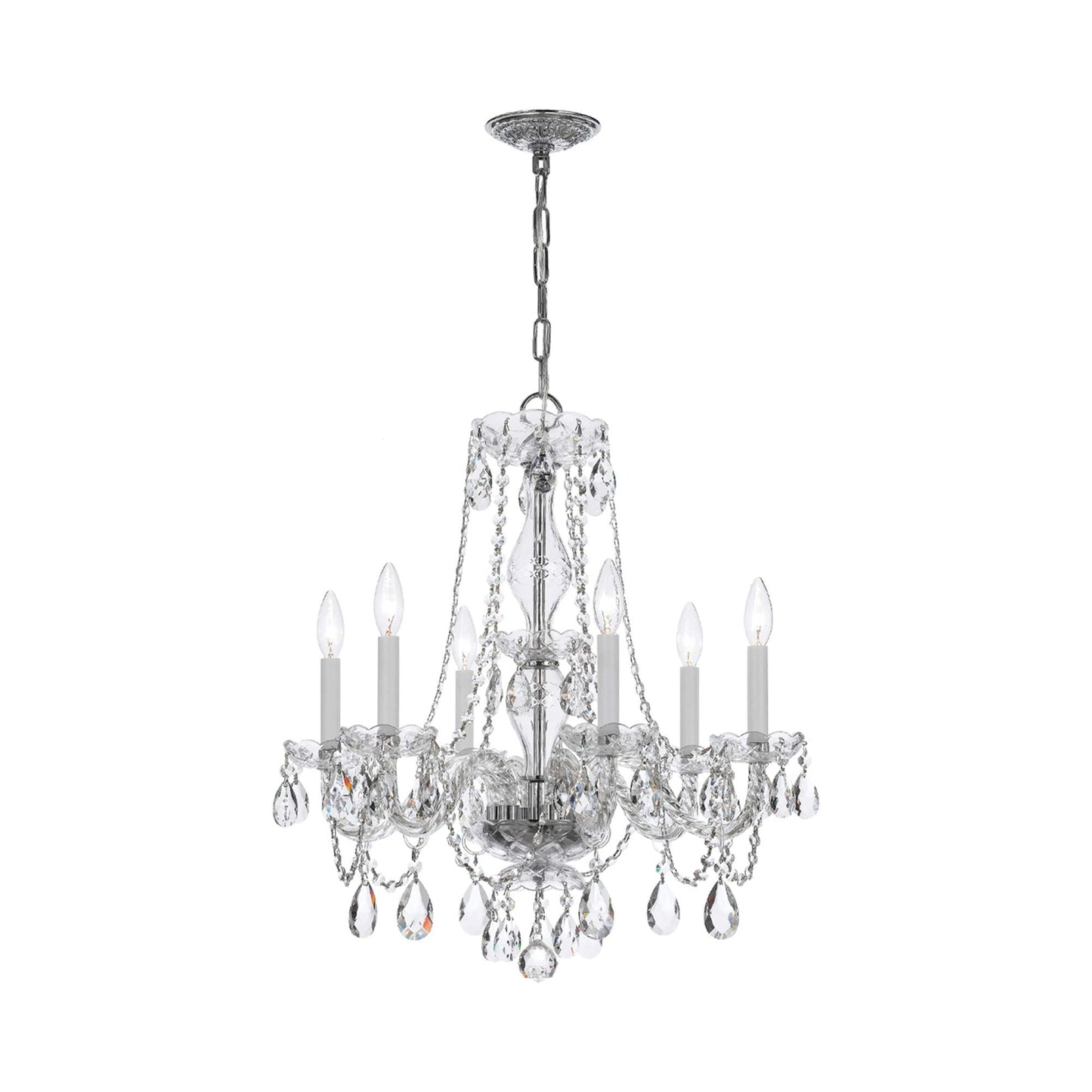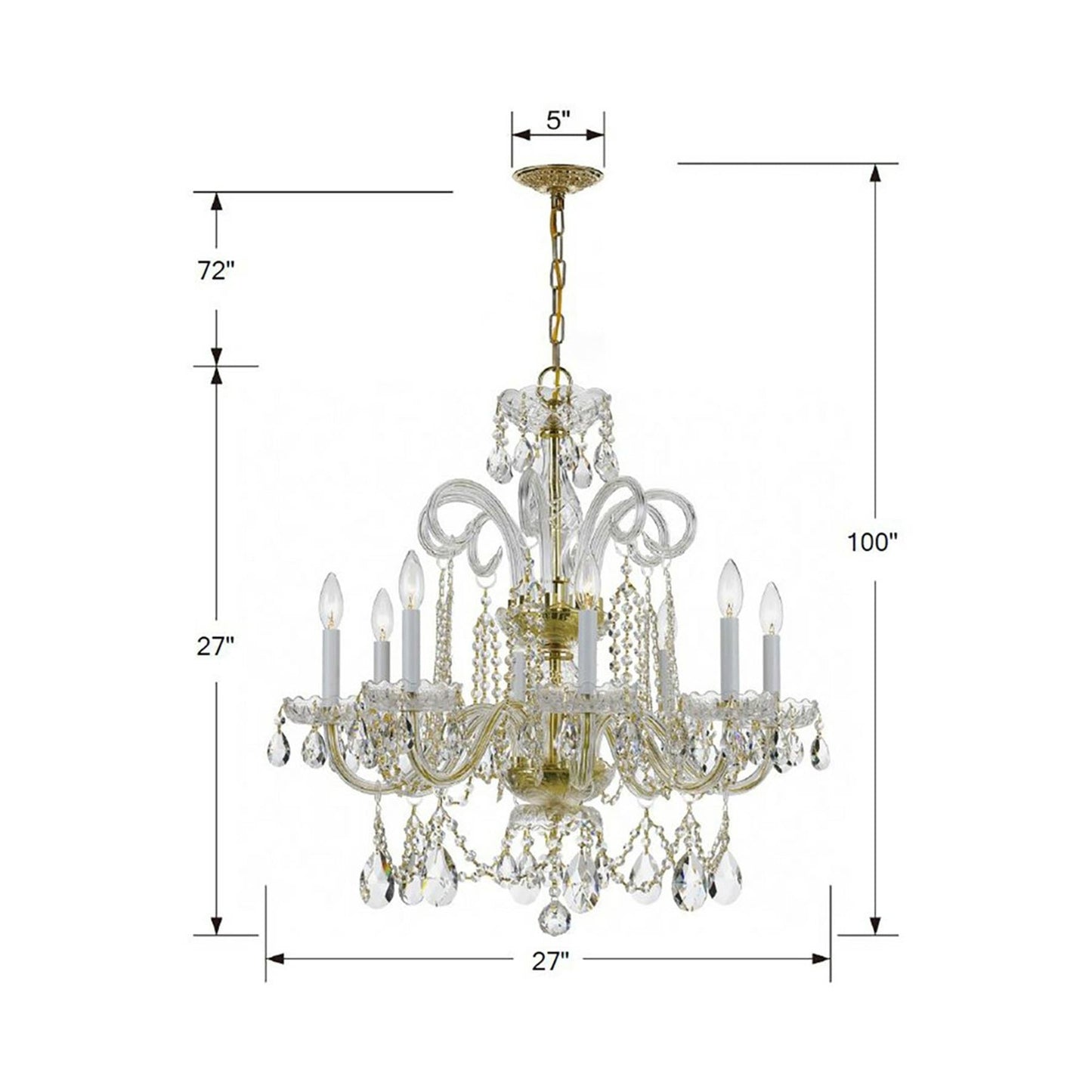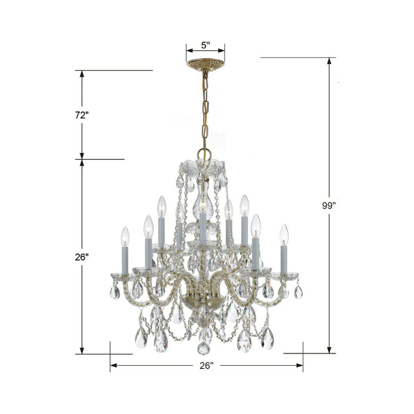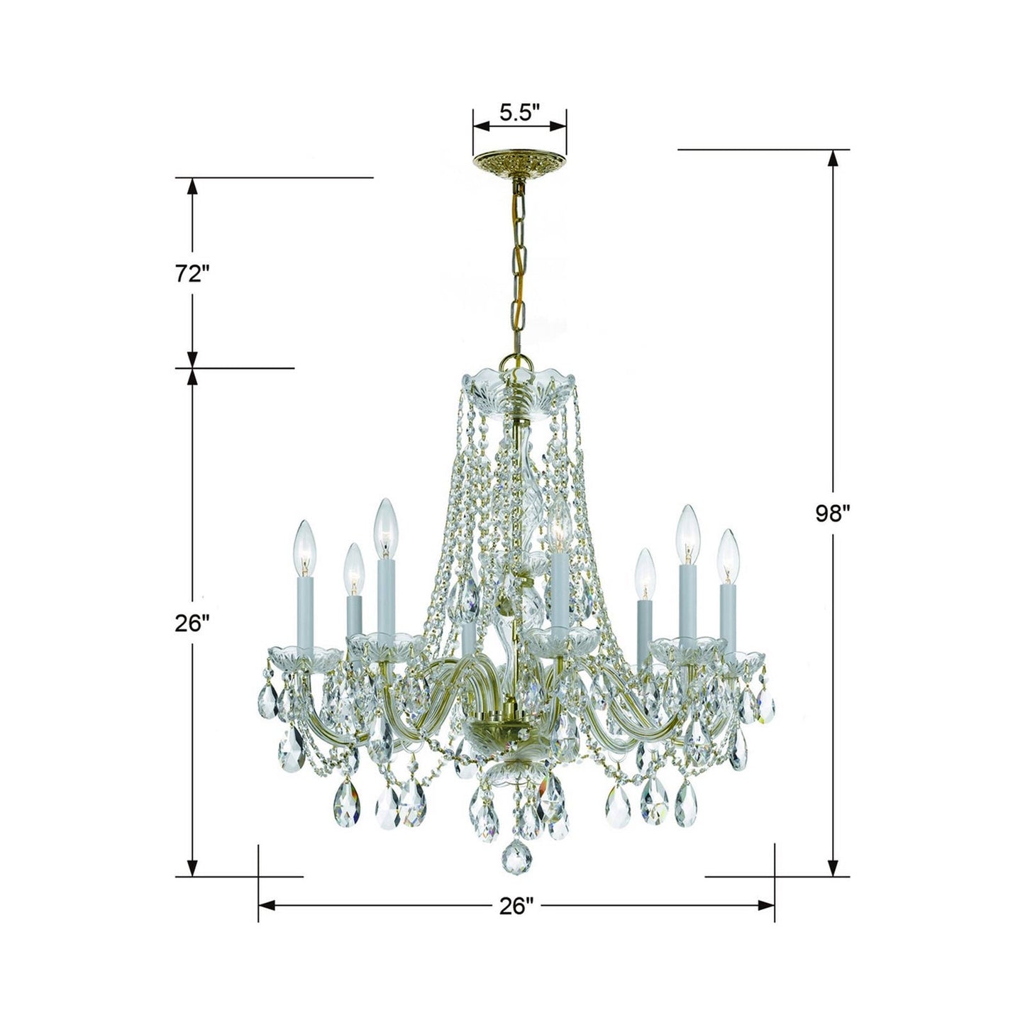 Take exuberant elegance to a new level with the luxurious look of the Traditional Crystal Chandelier from Crystorama. A classic mix of candelabra-style lighting and metal framing reinforces a beloved motif, with decadent and sparkling crystal accents and delicate strands of metal chains shaping an artisanal presence ideal for upscale dining areas and foyers.