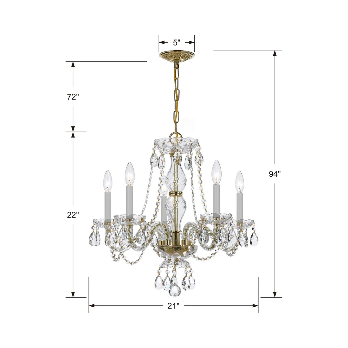 - 21-Inch/5-Light: 5 X 60W 120V E12(candelabra base) Type B incandescent lamps (not included)