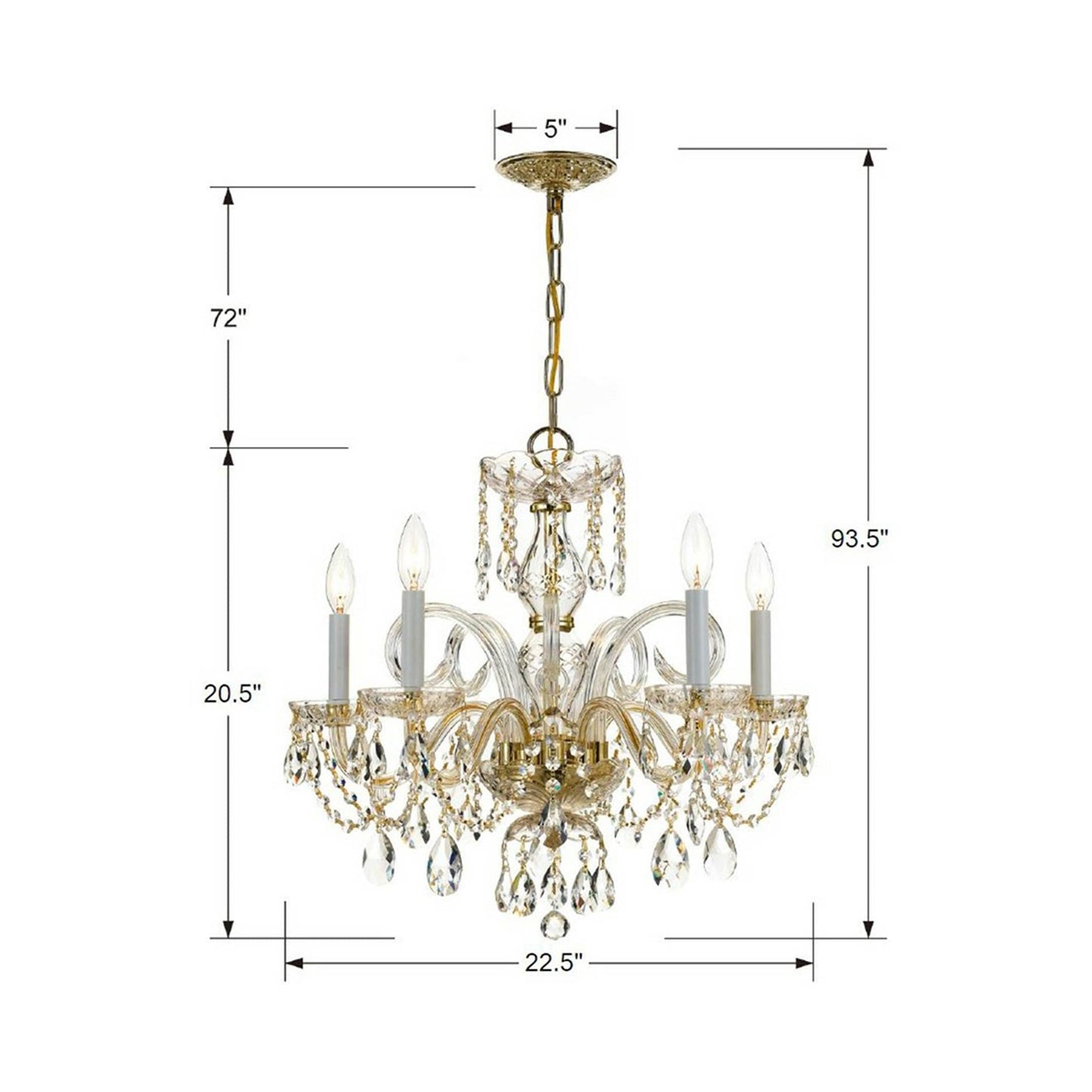 - 22-Inch/5-Light: 5 X 60W 120V E12(candelabra base) Type B incandescent lamps (not included)