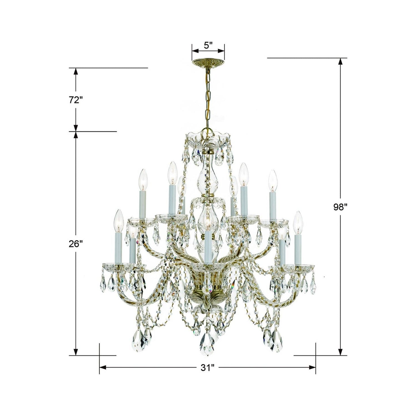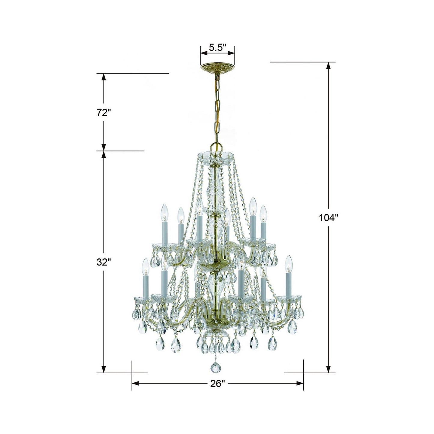 - 26-Inch/10-Light: 10 X 60W 120V E12(candelabra base) Type B incandescent lamps (not included)
