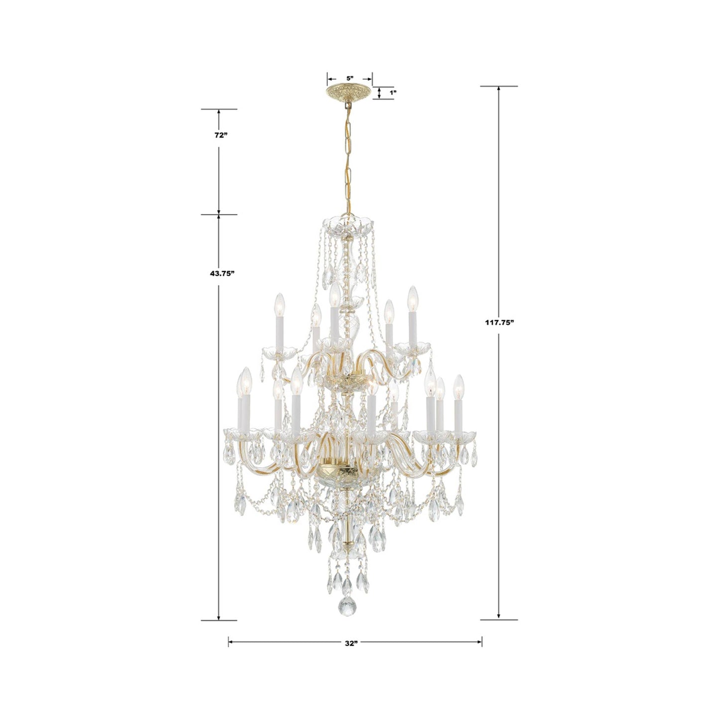 - 26-Inch/12-Light: 12 X 40W 120V E12(candelabra base) Type B incandescent lamps (not included)