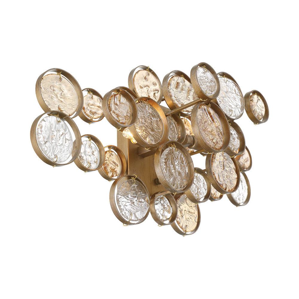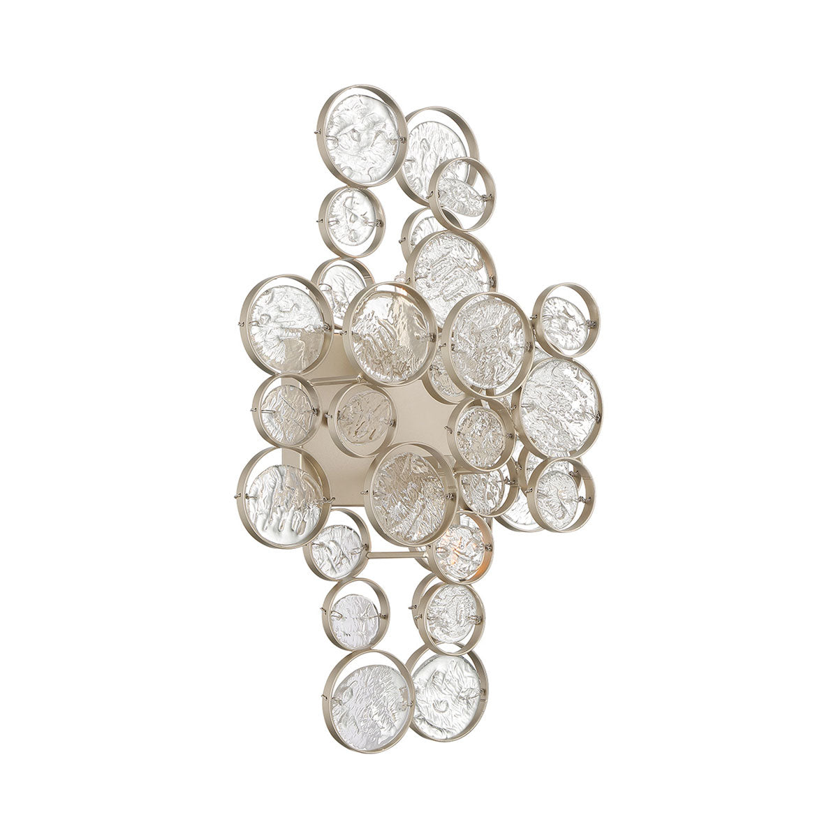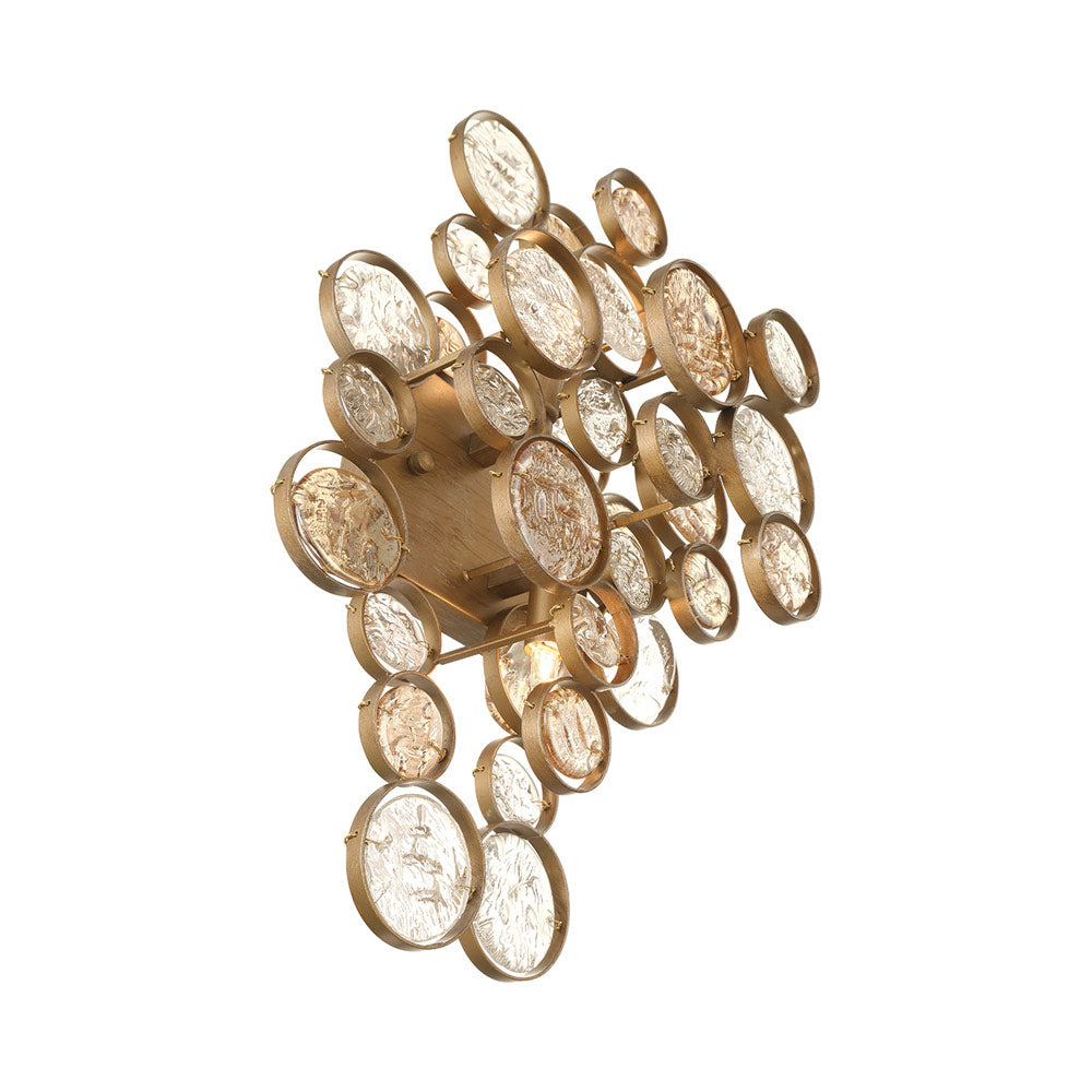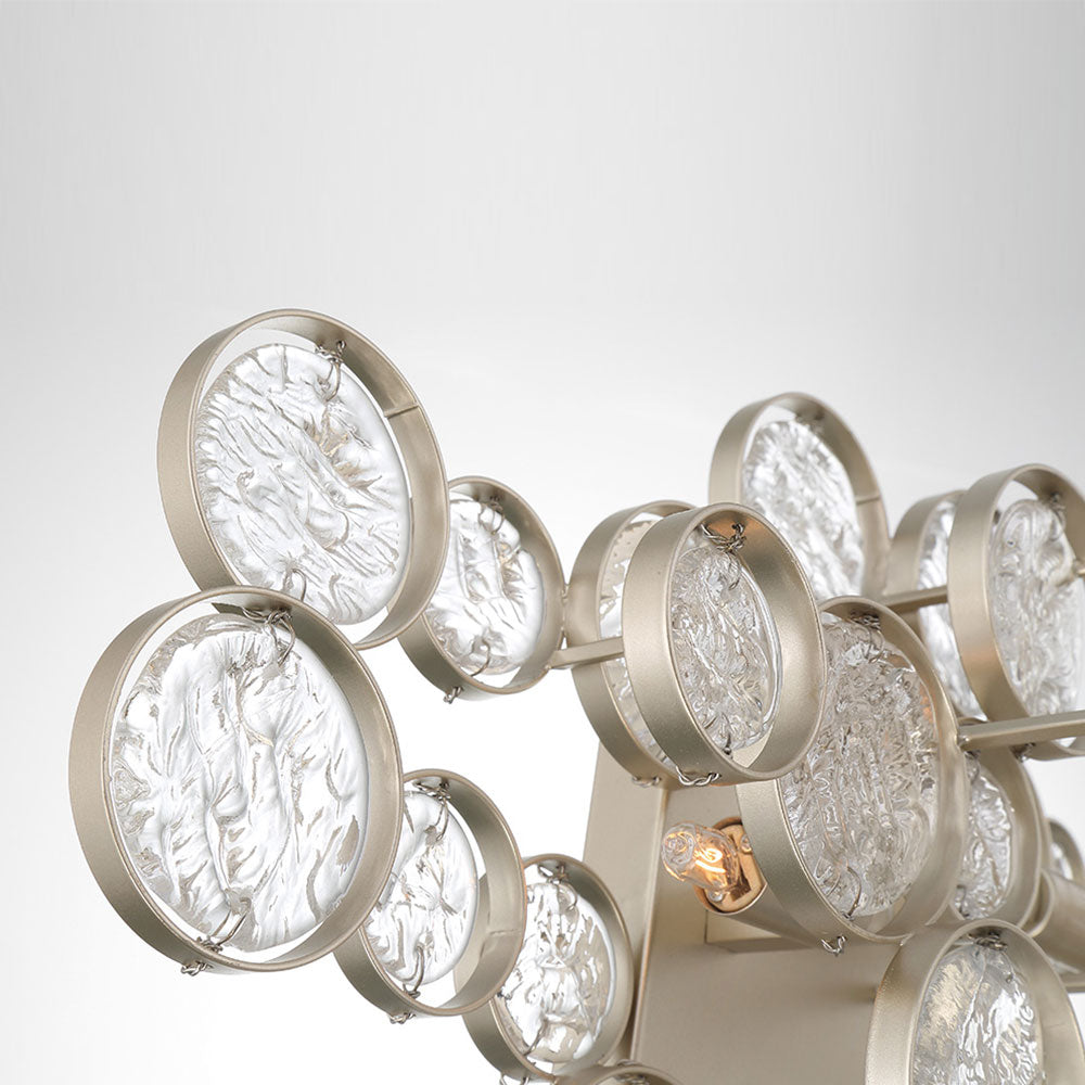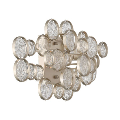 Hand-pressed, hand-strung glass wafers cluster into a delightful grouping with an abundance of fine artistry and deliver soft, glowing ambient illumination in a custom modern space. Tempting delicacy and sleek metal framing offers an eye-catching aesthetic to the Trento Vanity Wall Light from Eurofase. Texturizing offers sleek filtered lighting effects, transforming this exquisite fixture into a primary art form.