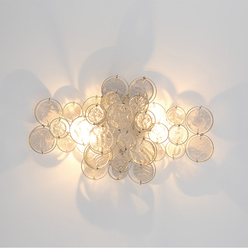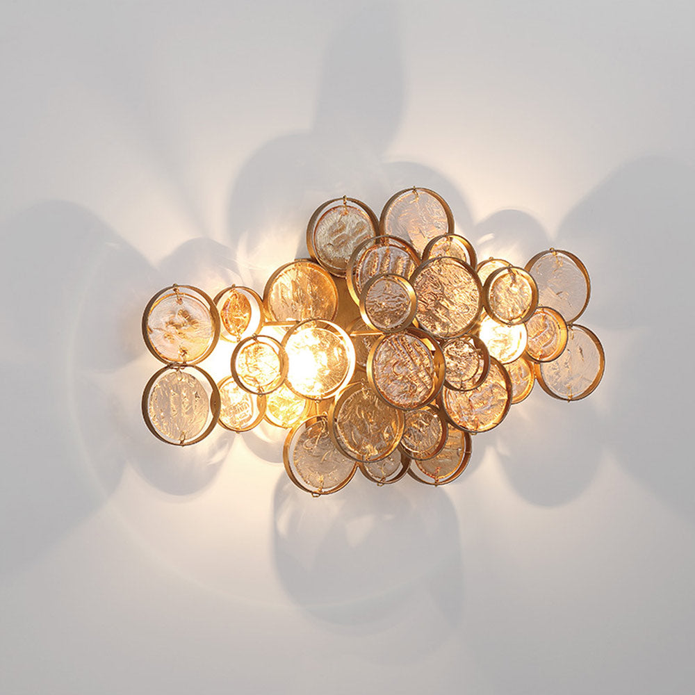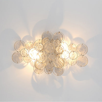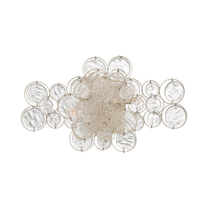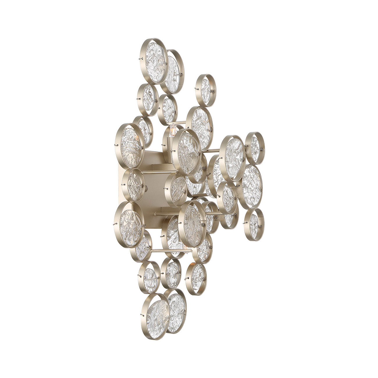 Hand-pressed, hand-strung glass wafers cluster into a delightful grouping with an abundance of fine artistry and deliver soft, glowing ambient illumination in a custom modern space. Tempting delicacy and sleek metal framing offers an eye-catching aesthetic to the Trento Vanity Wall Light from Eurofase. Texturizing offers sleek filtered lighting effects, transforming this exquisite fixture into a primary art form.