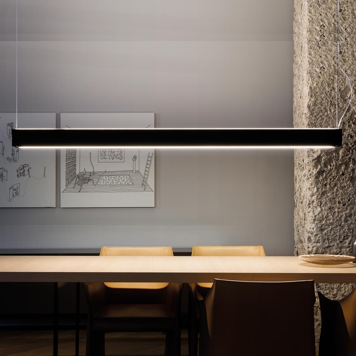 Responding to trends leaning low-key and minimalist in nature, the Tru LED Linear Pendant Light from NEMO embraces sophistication through clean styling and an eye-catching horizontal orientation. Choose from variations offering custom features that suit your taste and demands for uplighting and/or downlighting in a contemporary living space.