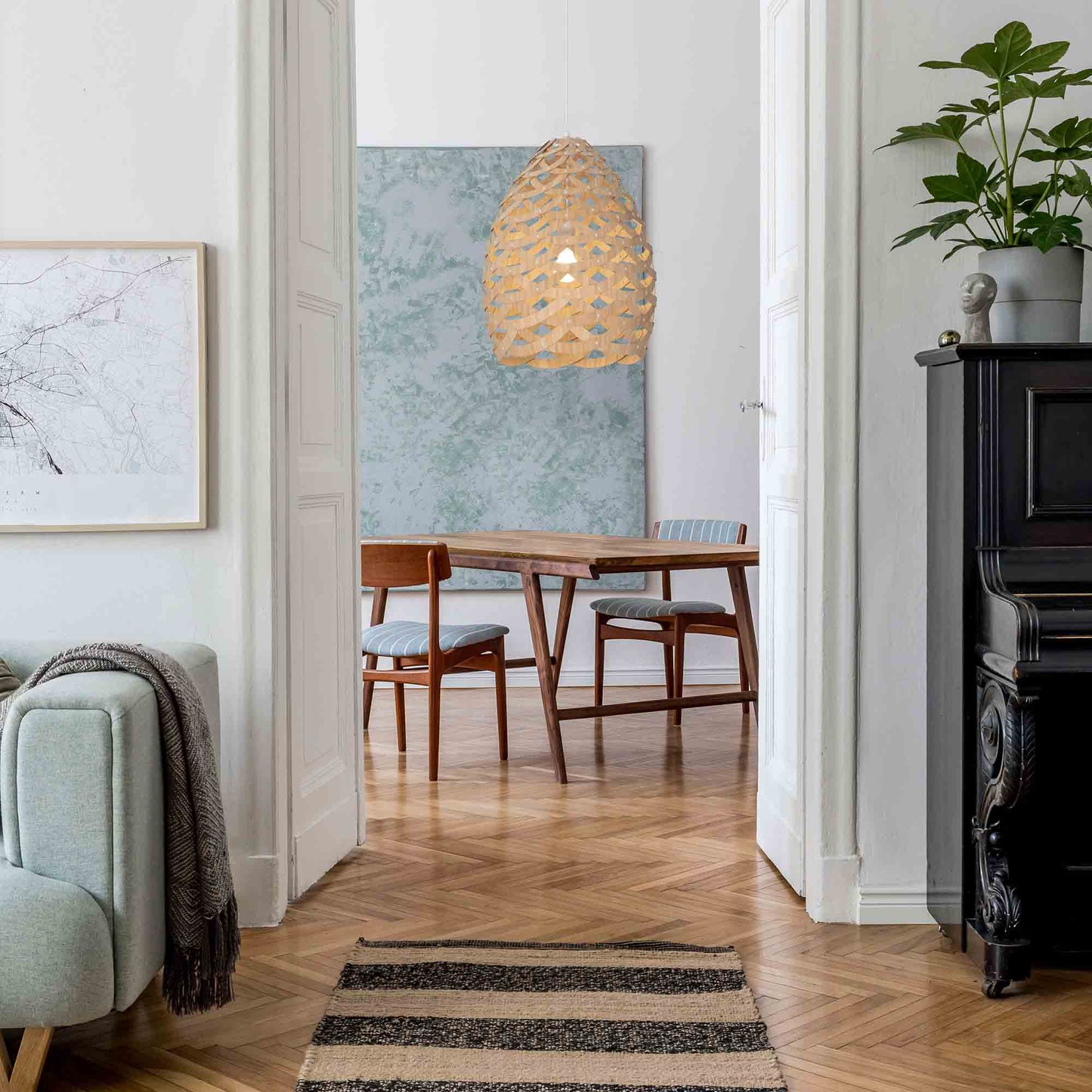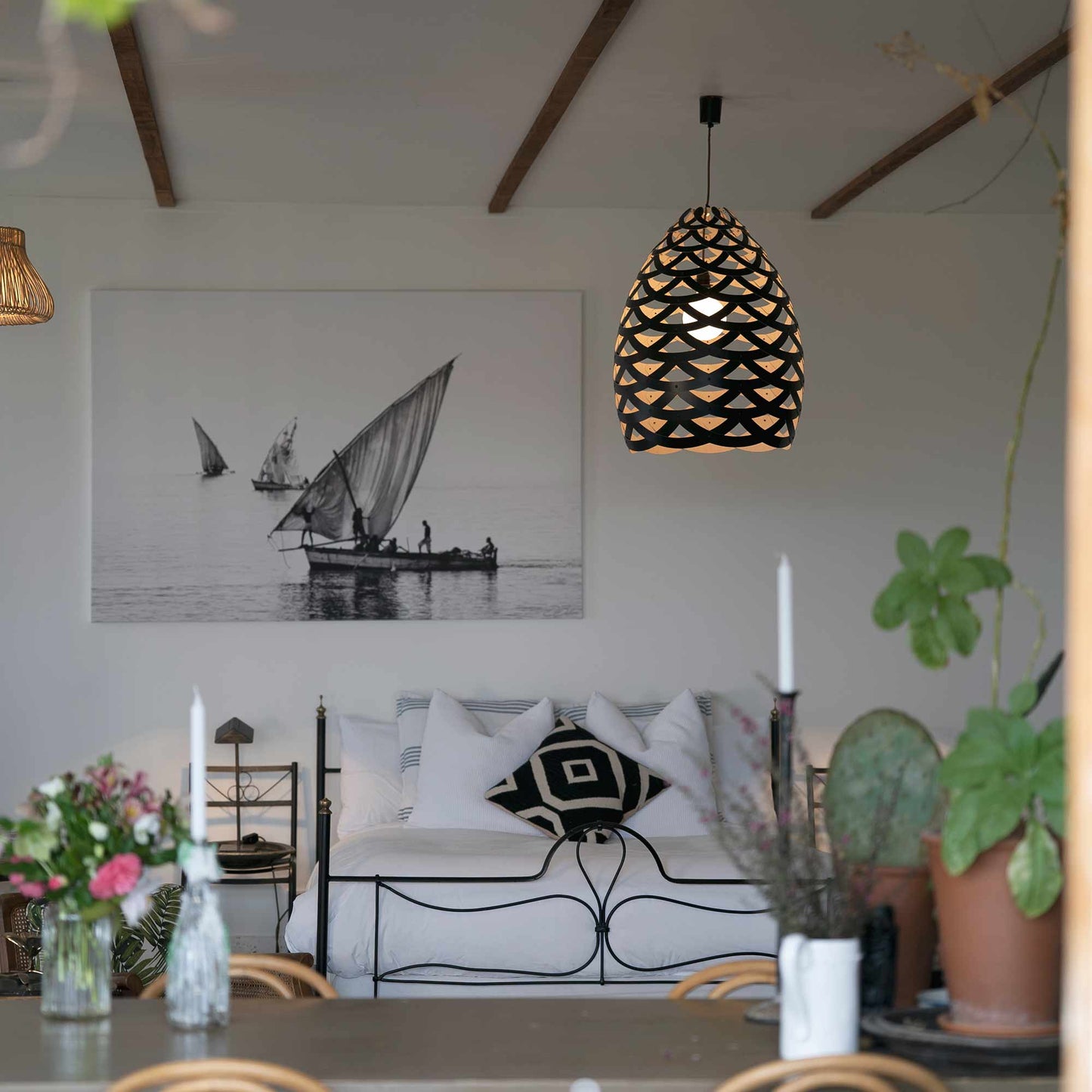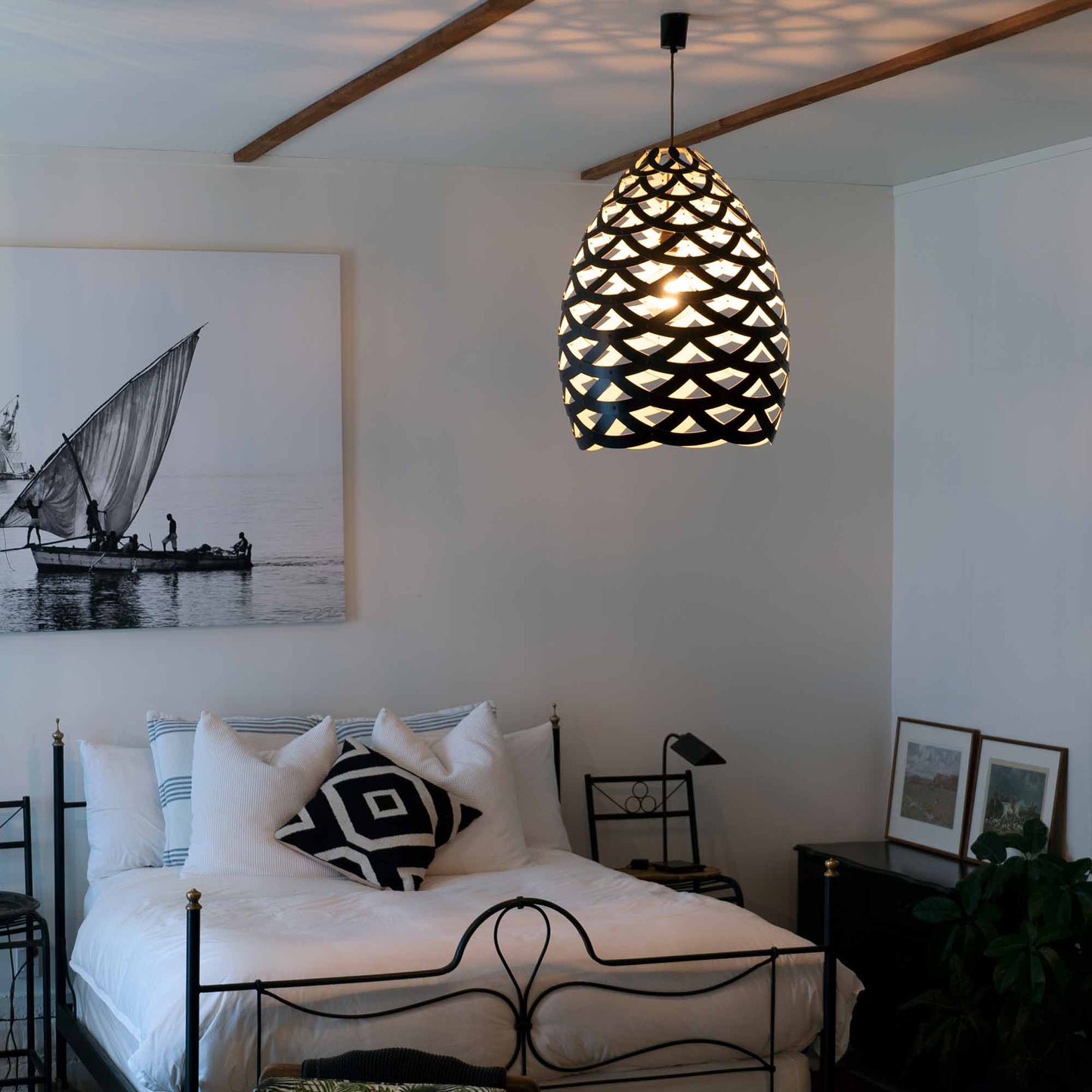 Inspired by interwoven rings appearing in nature, the Tui Pendant Light from David Trubridge brings incredibly texture and dimension to a kitchen or entry. Its softly rounded shape imparts modern simplicity while the latticed structure creates beautiful shadow patterns.