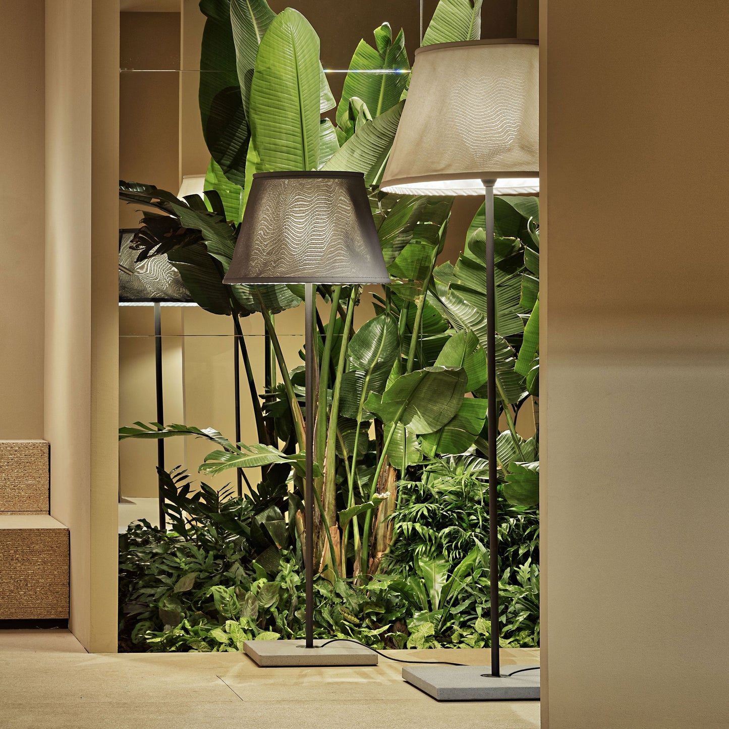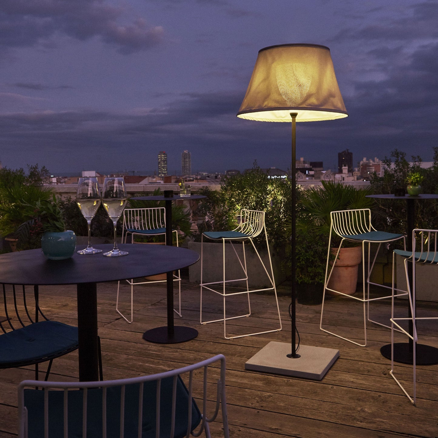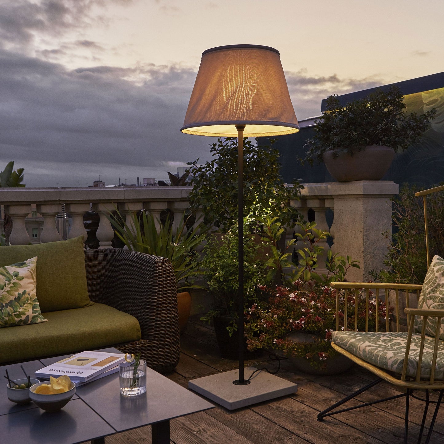 Transform an exterior entertaining space into a haven for design and comfort with the TXL 2019 Outdoor Floor Lamp from Marset, enjoying an overlap of conventional interior lamp elements serving as mainstays for decades. Patios and decks become gathering spots for groups or solo respites with a lamp featuring a tapered fabric shade that accommodates weather elements and an earth-inspired poured concrete base adding stability and appropriate aesthetics for an outdoor setting.