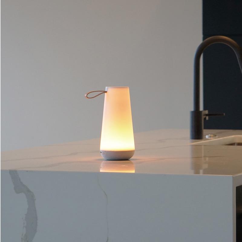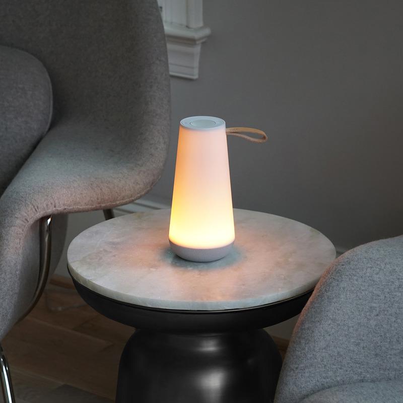 Adventure outdoors or in with the chic UMA LED Mini Sound Lantern from Pablo, embracing a love of nature with tech convenience. Its sleek tapered cone silhouette mimics a traditional lantern, as a Bluetooth-enabled feature serves as a stereo unit with touch-sensitive volume control and 360-degree surround sound capabilities from a mobile device. Enjoy the warmth of a glowing lantern emitting state-of-the-art LED lighting technology.