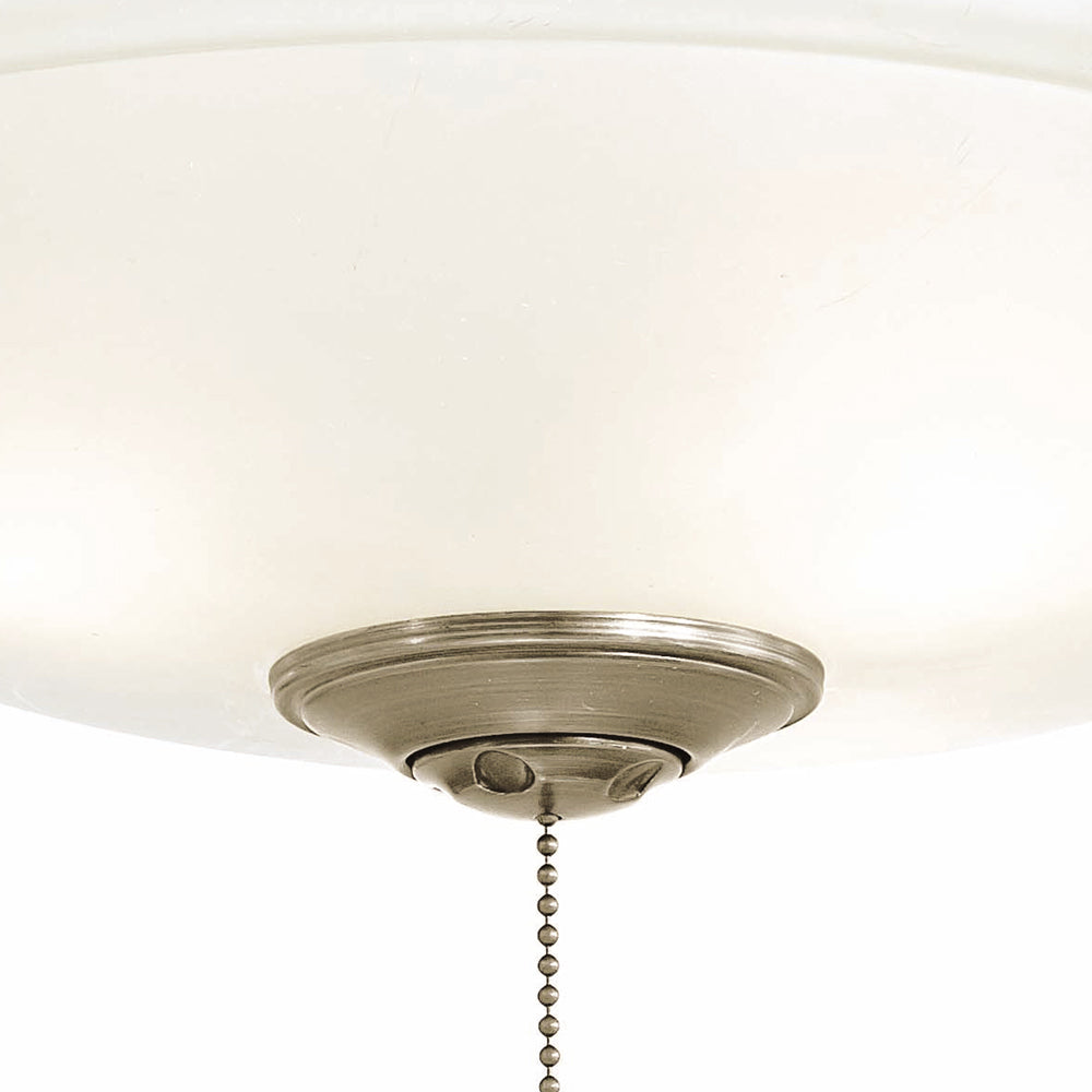 Transform an existing ceiling fan into a delectable source of tasteful décor. The Universal K9515L Fan Light Kit from Minka Aire sends energy-efficient illumination through a decadent frosted white glass saucer-shaped shade, as sleek metal accents and a center pull chain put focus on minimalist artistry.
