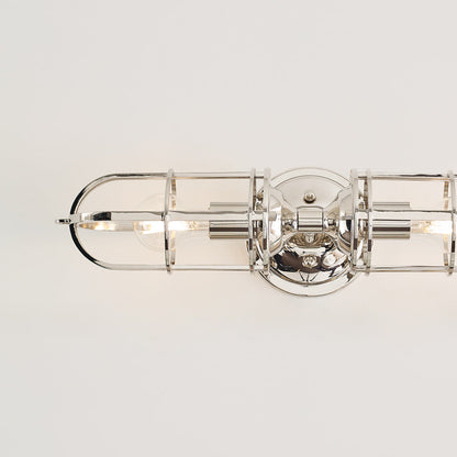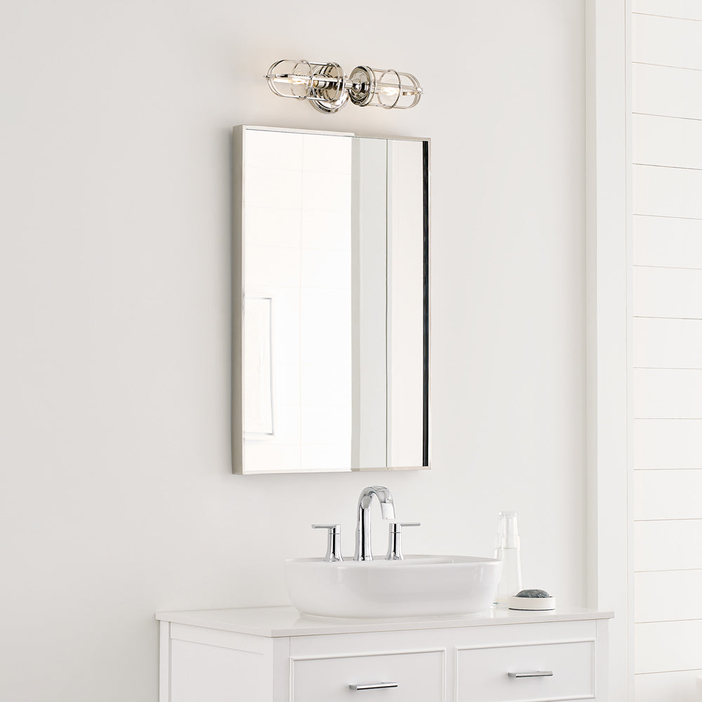 Inspired by classic warehouse design, the Urban Renewal Bath Vanity Light from Generation Lighting adds a classic finish to a bold caged shade.