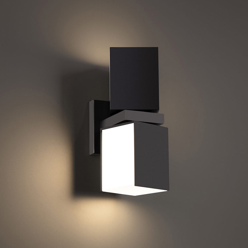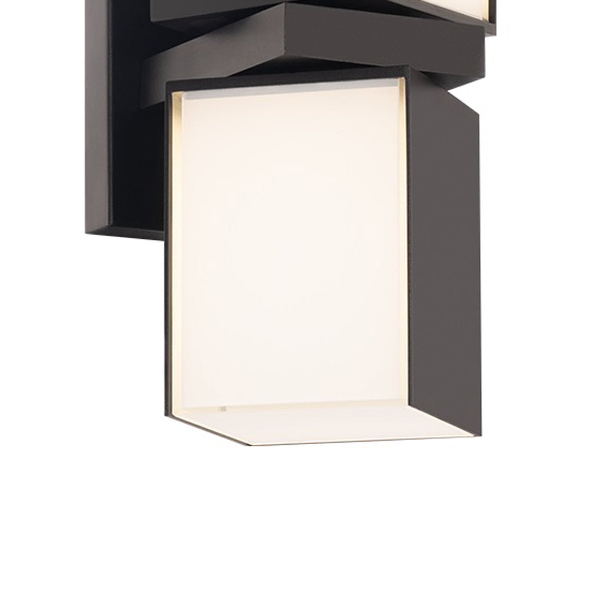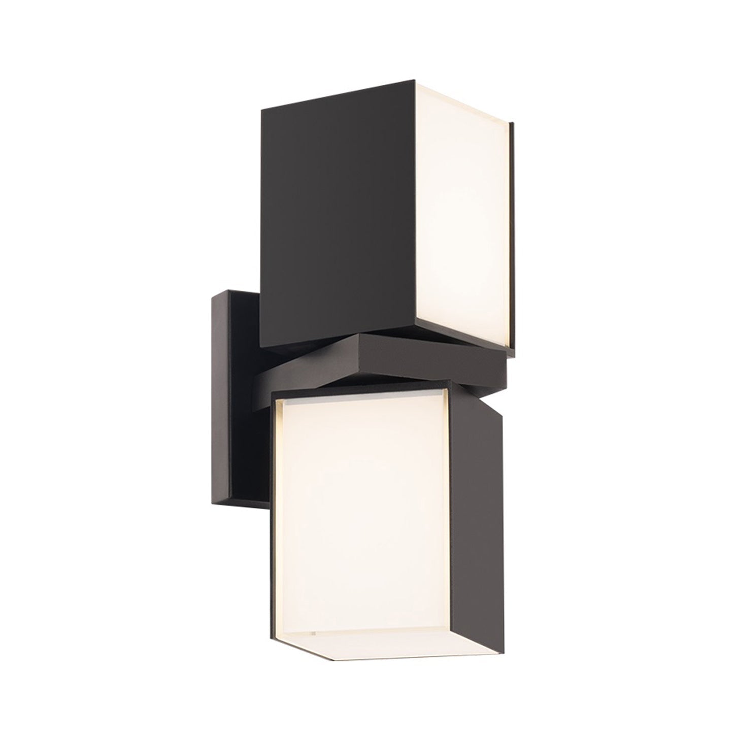 Energizing style and a rotational function checks all the boxes of desirable lighting as the Vaiation Outdoor LED Wall Light from dweLED makes itself at home in a fashionable exterior space. Geometric elements create rectangular blocks of black finish metal frames nestling ceramic silk-screened mitered glass diffusers. Position each block to send ambient, energy-efficient lighting as needed for outdoor mood effects.