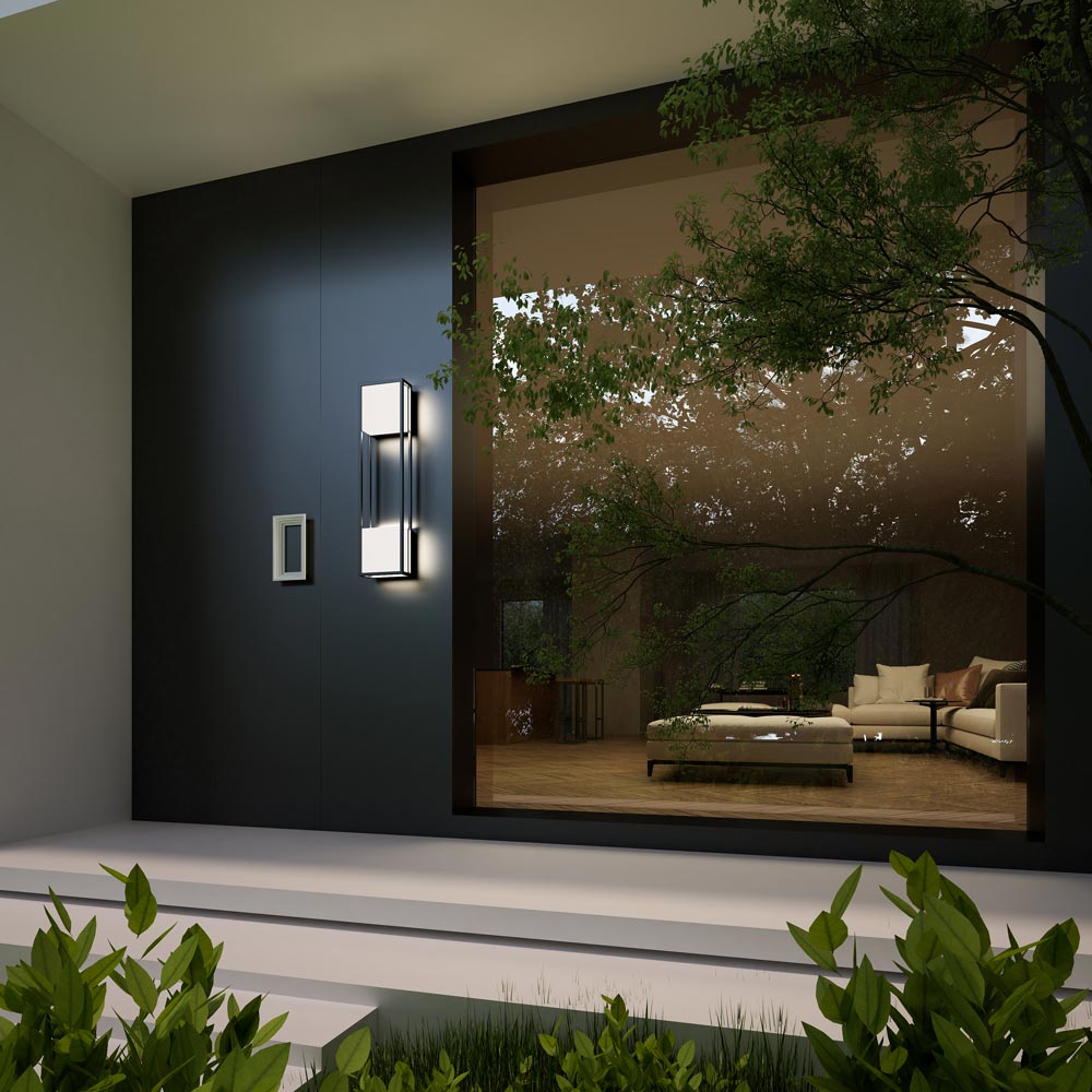 Modeled after a classic design and echoing the chic artistry of lighting, the Vail Outdoor LED Wall Light from Kuzco Lighting is an excellent choice for delivering simplicity with sophistication. A crisp linear silhouette with rectangular shaping mixes powder coated steel and aluminum framing in openwork metal tradition, with each end adding glowing light through clear exterior white and white interior glass.