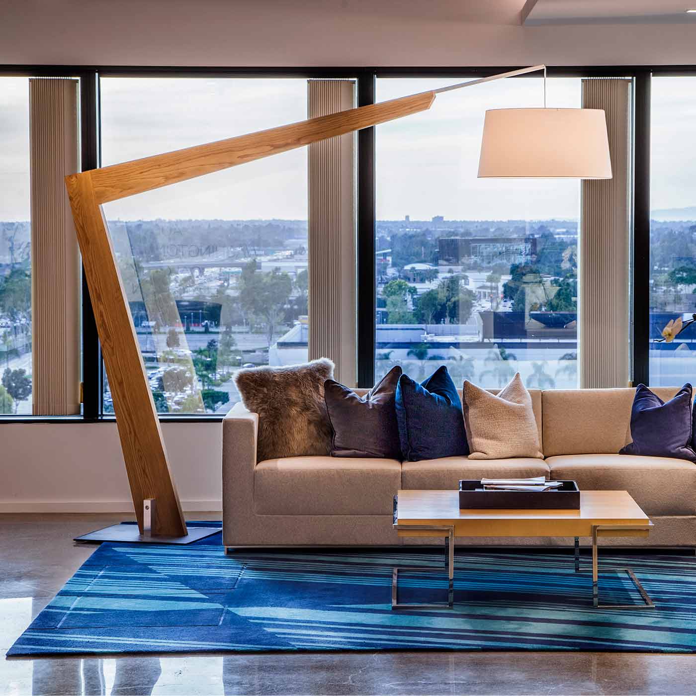 Absorb the stunning modern architectural vibe of the contemporary Valeo Floor Lamp from Cerno. Delivering soft, energy-efficient lighting, this lamp design blends graceful and stark into a versatile motif, with wood construction and asymmetry standing out as focal points.