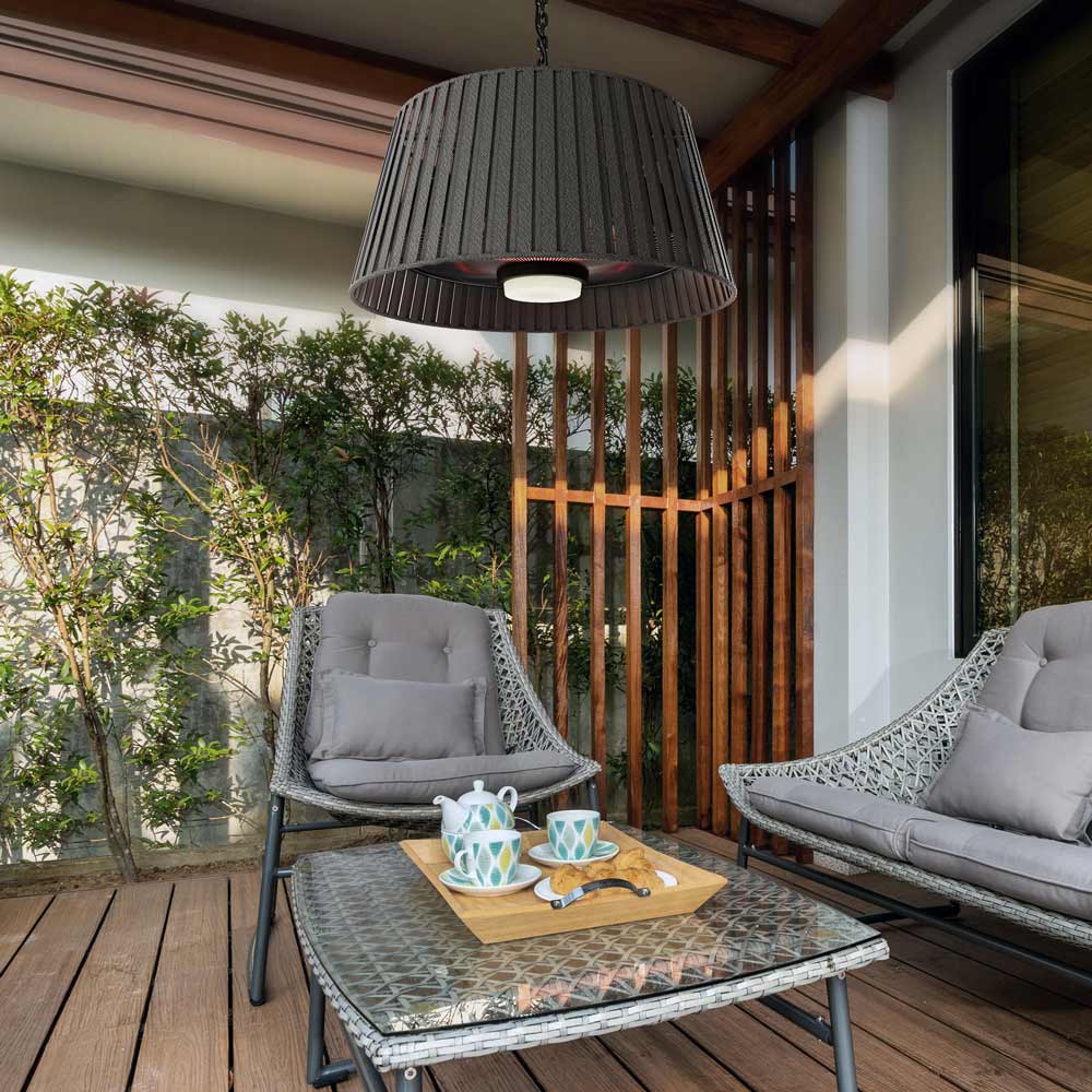 Cast soft light and warm heat with the Vellura Pendant Light Heater from Eurofase. It makes chilly evenings on the patio or porch more comfortable, while delivering impeccable modern style with clean lines and a lovely fabric shade for excellent diffusion of heat and light. Thoughtful design leads to harmonious style, perfect for a soothing, relaxed outdoor space.