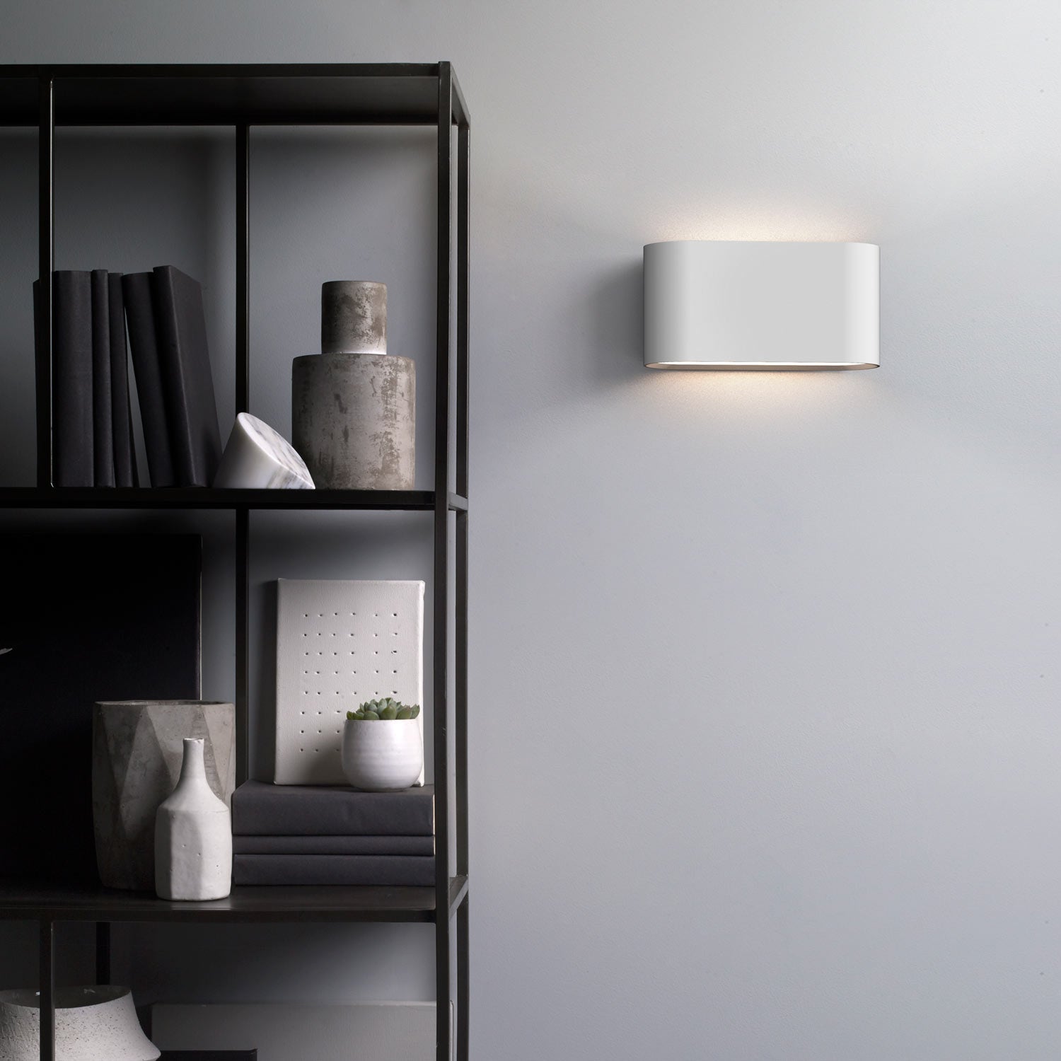 Smooth symmetrical curves soften a contemporary sophisticated ambiance repurposing simplicity to work in upscale settings. The Velo LED Wall Light from Astro Lighting creates indulgent artistry and romantic mood illumination with energy-saving LED modules. Add a minimalist yet upscale look with this fixture that delivers convenient dimming features.