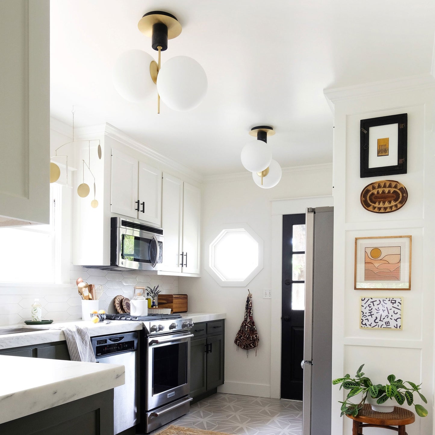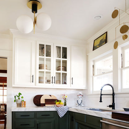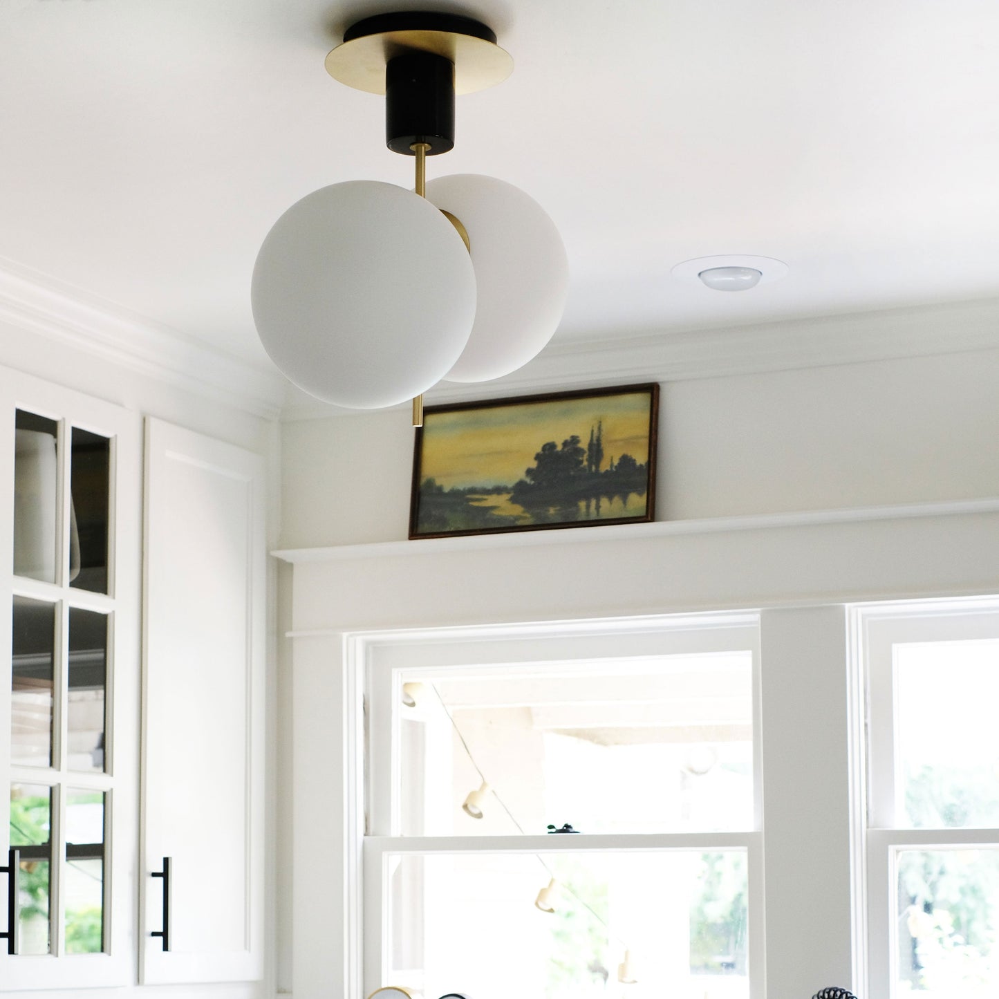 Choose from a single- or double-light design to inspire retro charm with the Vesper Semi Flush Mount Ceiling Light from Maxim Lighting, focusing on a festive globe shade embellishing casual elegance.