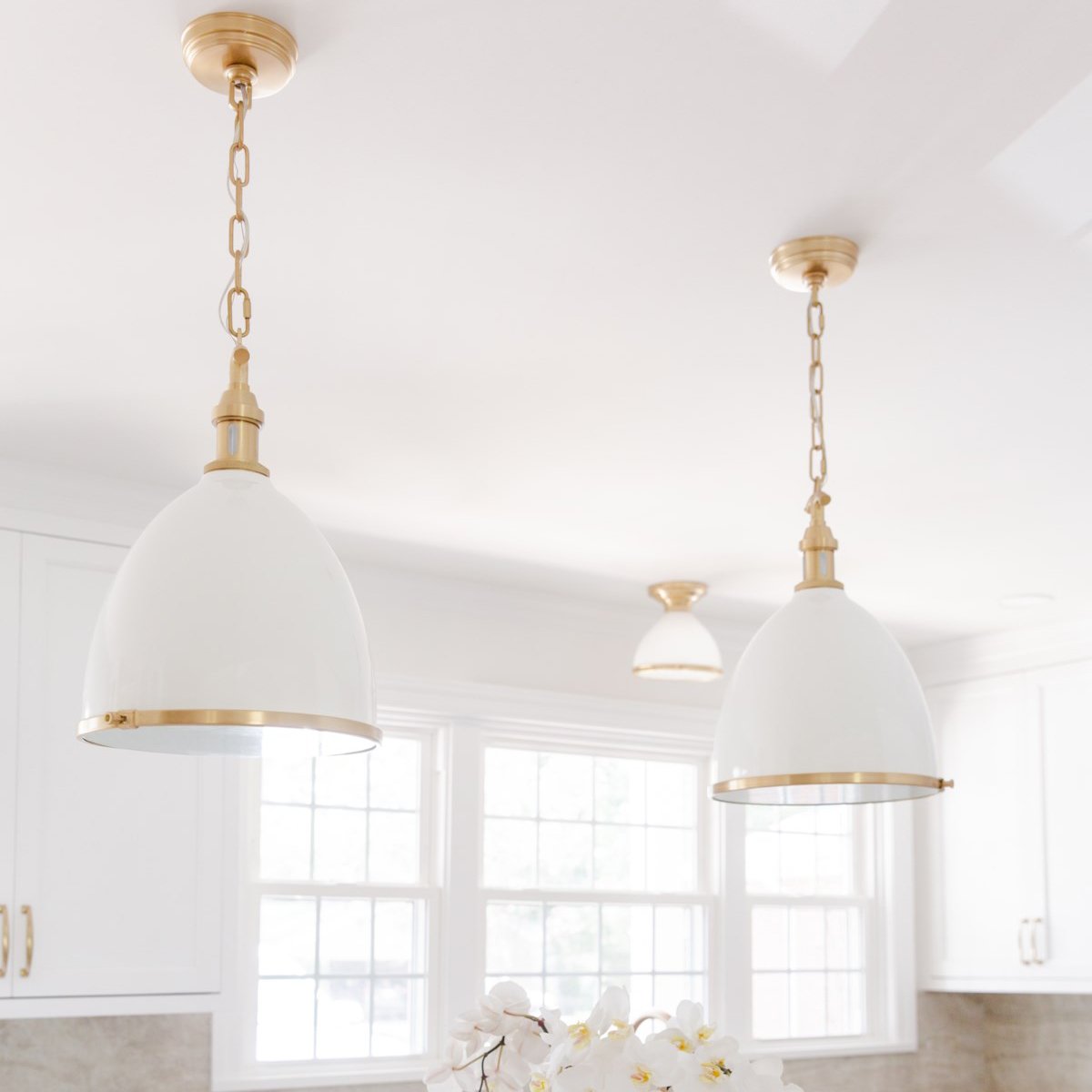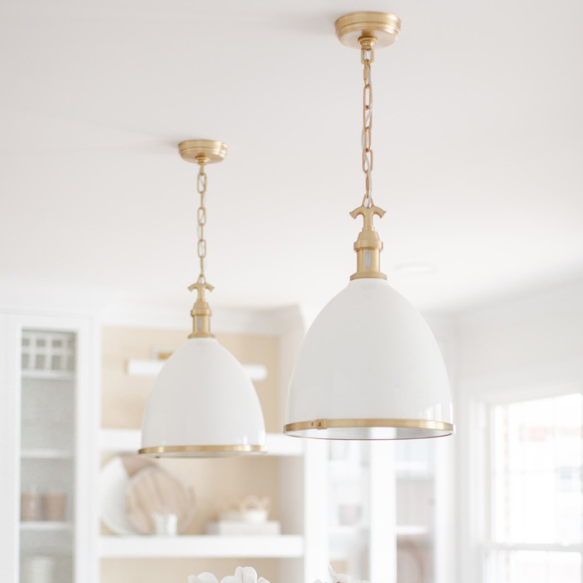Anchoring the domed metal shade to its hanging chain, Viceroy’s detailed cast socket holder suggests the pendant’s nautical inspiration. A polished metal ring secures the pendant’s unique down-light diffuser: a wire-mesh safety glass that recalls the fixture’s rough-service roots. The shade’s glossy enamel coating completes Viceroy’s vintage appeal.