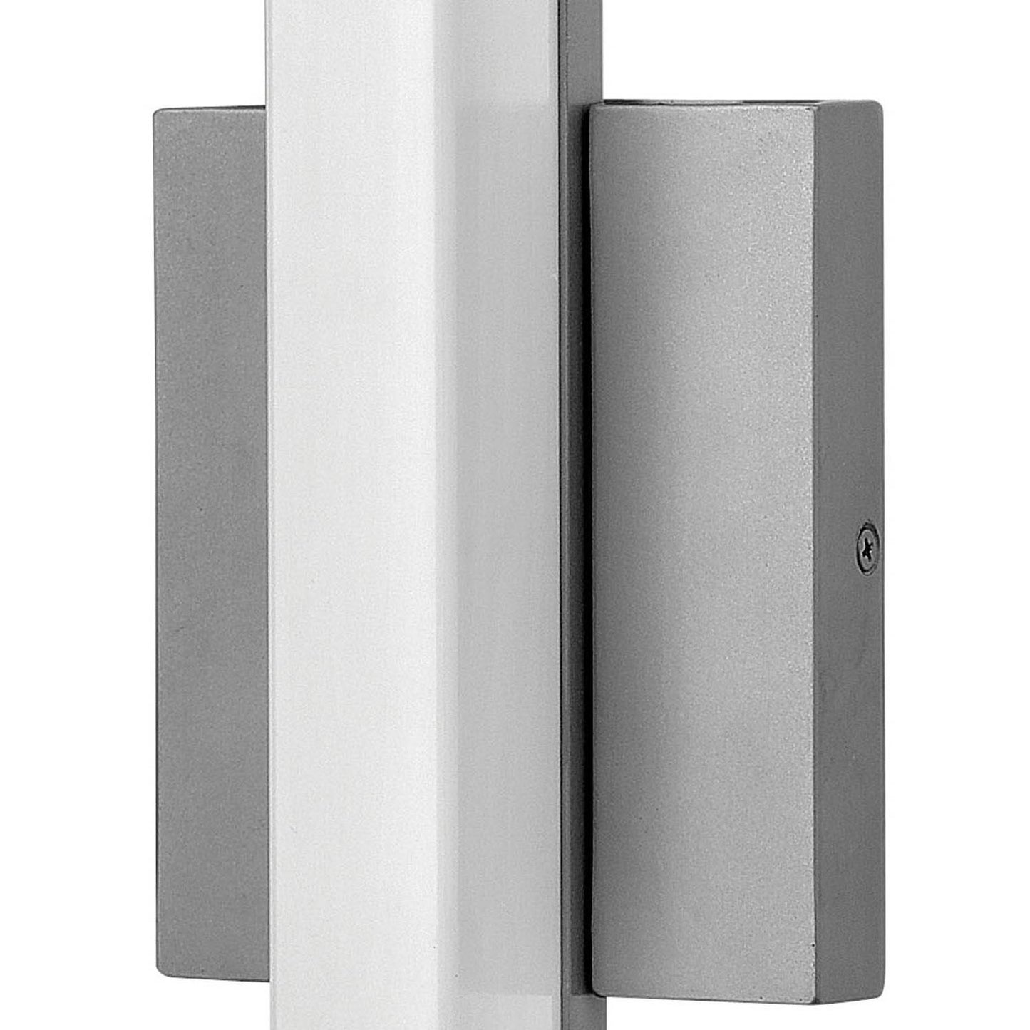 Crisp with a linear silhouette, the Vista LED Vanity Wall Light from Hinkley replicates the sleek modern style of a contemporary space. Line hallways or add accent lighting to a living room with this fixture featuring an elongated squared shade made of die-cast aluminum. Angle-cut framing and a matching wall mount adds a two-tone effect and a fresh, inspirational update.
