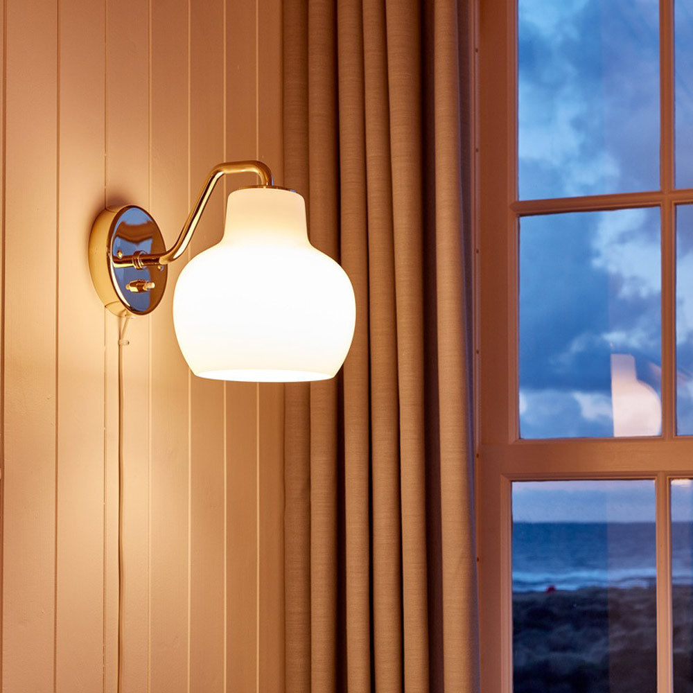 Create inviting ambiance without compromising your sophisticated style with the VL Crown Wall Light from Louis Poulsen. Deliciously modern, the fixture features a timeless shade crafted of glossy opal glass that delivers a warm wash of downlighting. Energy efficient, the sconce is complete with a rich brass finish wall plate and arm, offering graceful ambiance to a hall, entry, or living area.