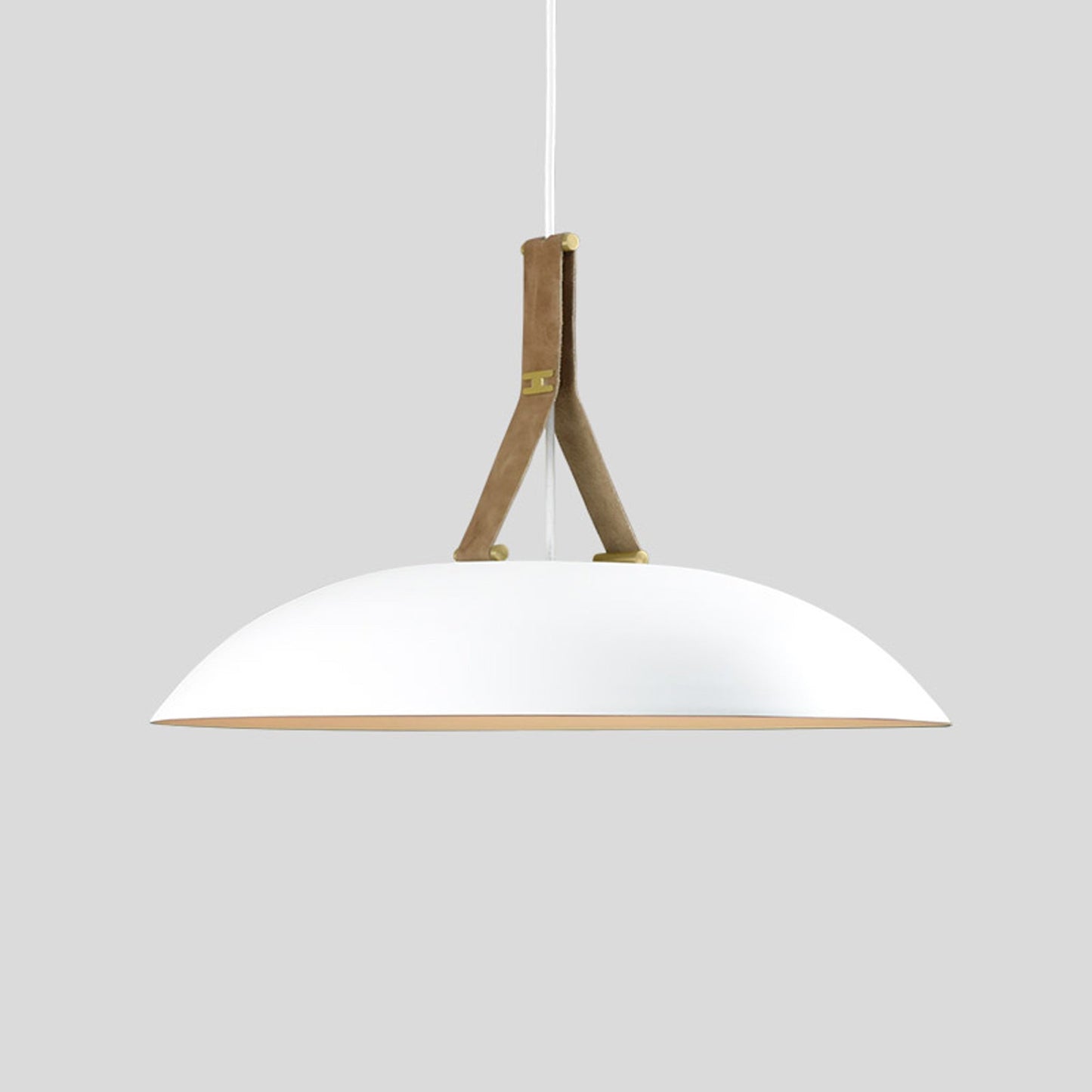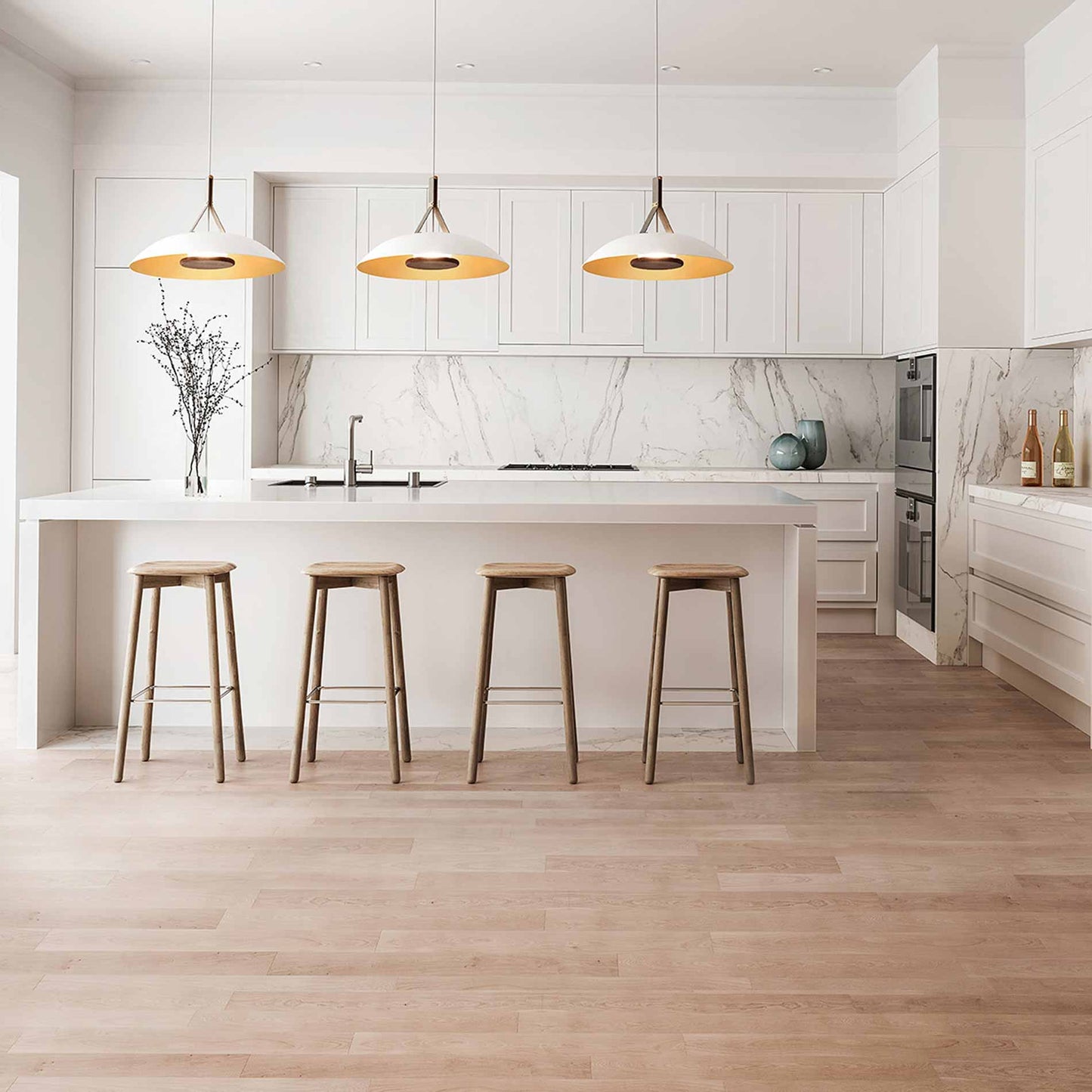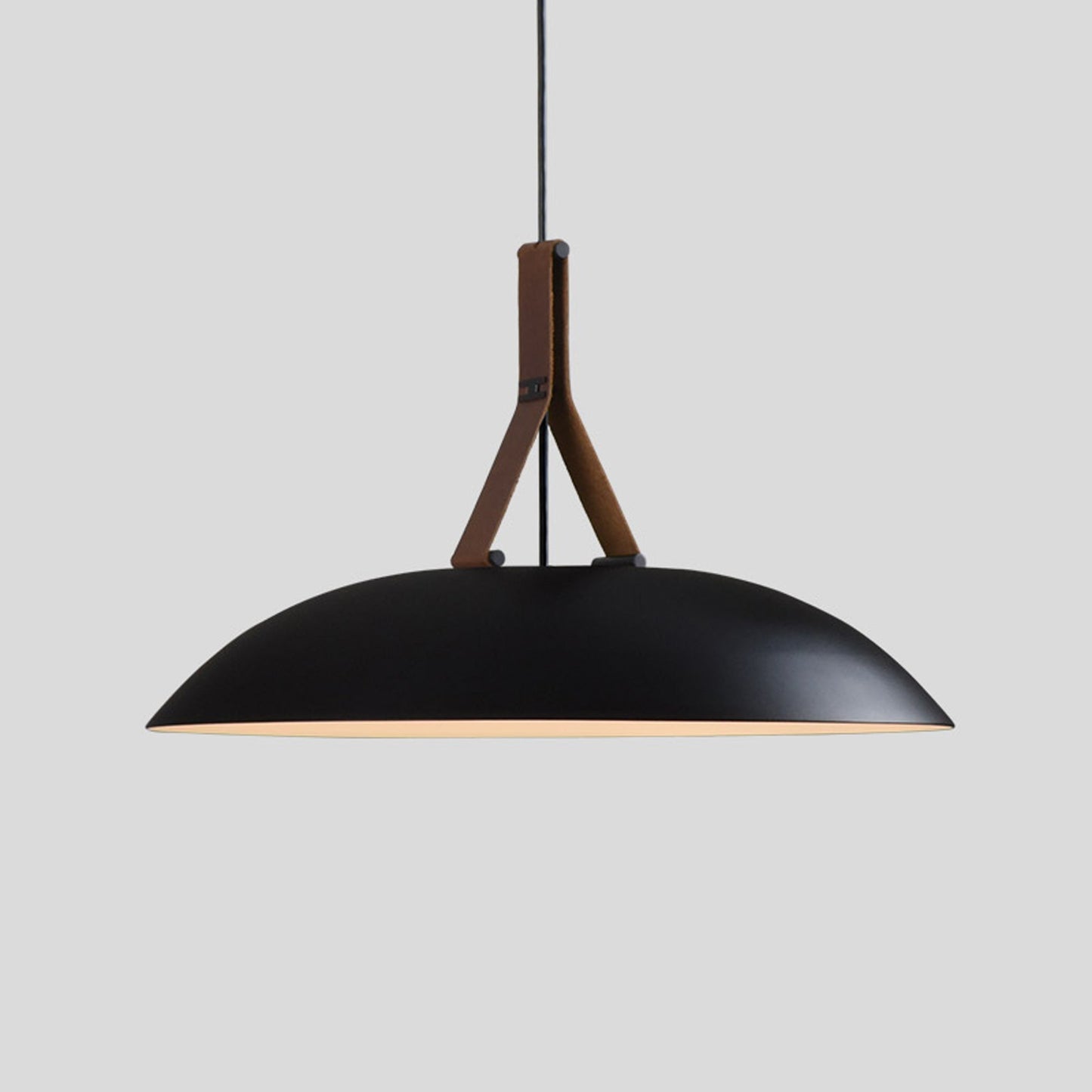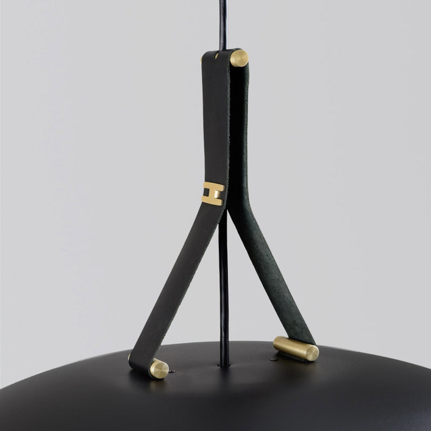 Dramatic attitude follows a sleek circular silhouette that stands out in the Volo LED Pendant Light from Cerno. A blend of natural materials composes a space-inspired version of industrial aesthetics in a fixture offering energy-efficient lighting in a modern living room, reading spot, or dining space.