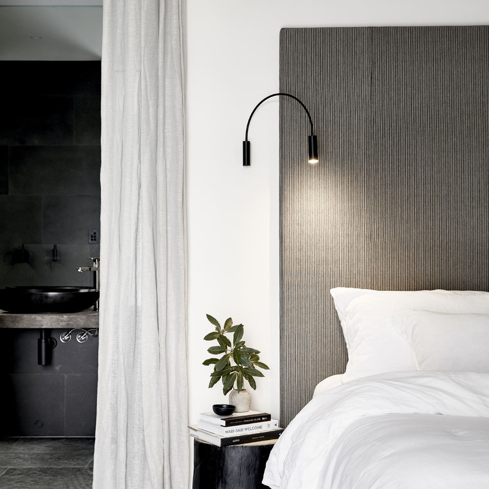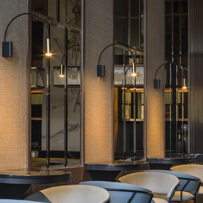 Designed to be both serene and captivating, the Volta LED Wall Light from Estiluz offers a quiet elegance. A slender, curved arm extends from the wall, holding an illuminated cylindrical head that spills warm light through an acrylic diffuser. This minimalist wall light adds a sophisticated touch to any room, creating a calm and intimate atmosphere while offering a functional glow to enhance your space.