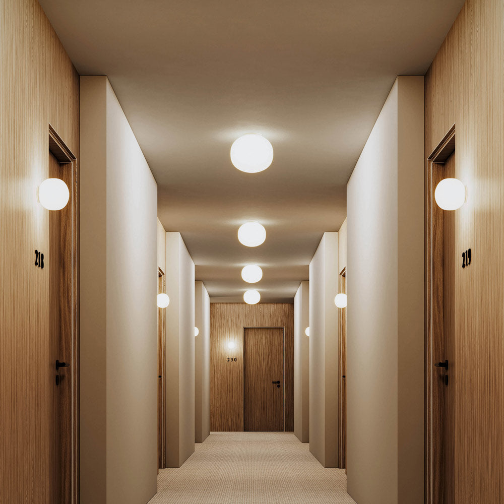 The Volum Wall Light from LODES create a bubble of glowing illumination, with varies size options that allow you to create custom configurations for an artistic touch in an entry, living area, or bath. Its blown glass globe creates diffused, uniform illumination, offering a warm glow that infuses your space with a welcoming aura that brims with sophistication.