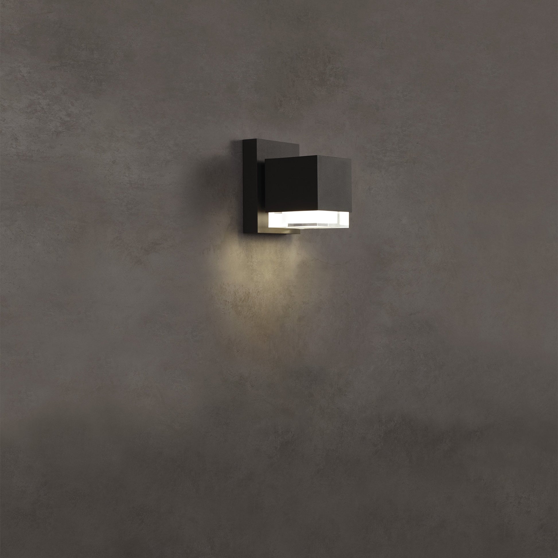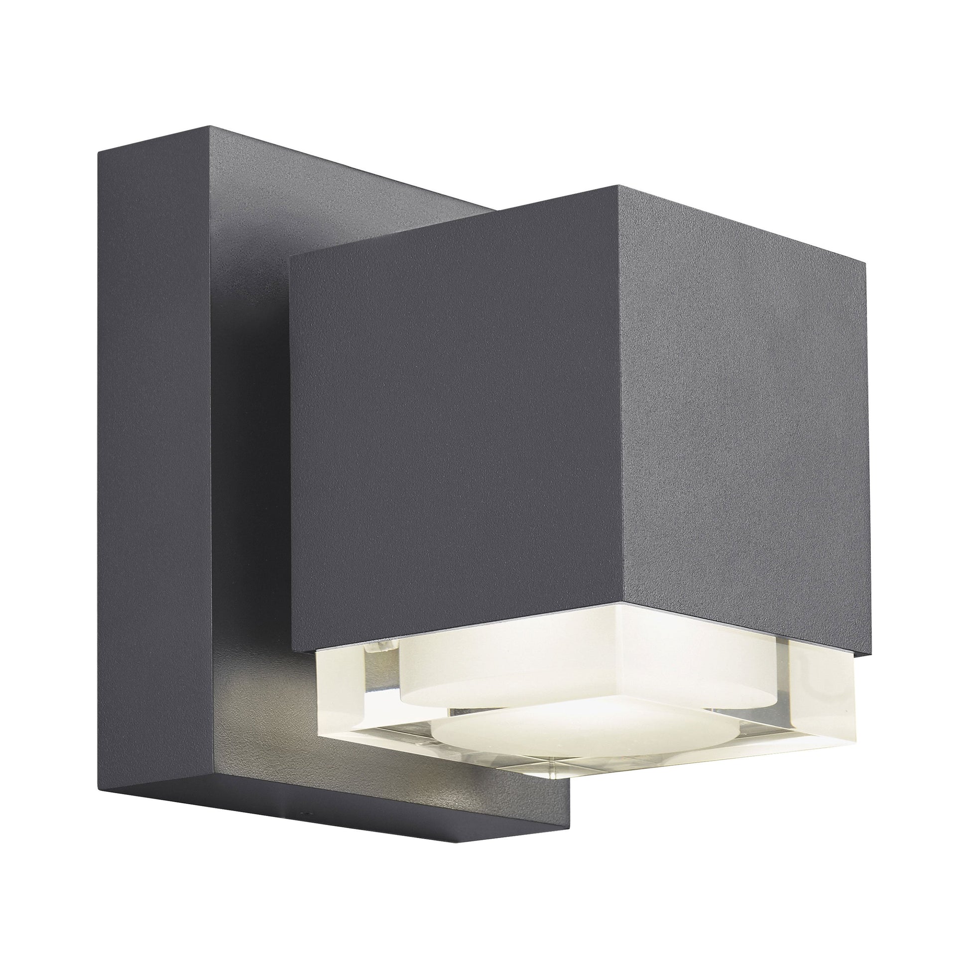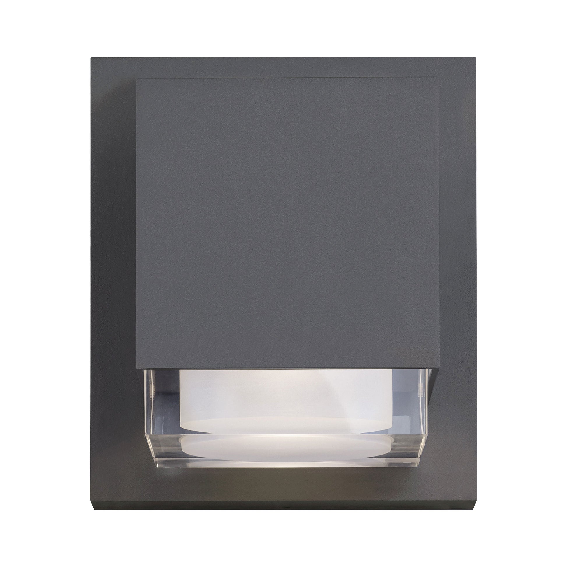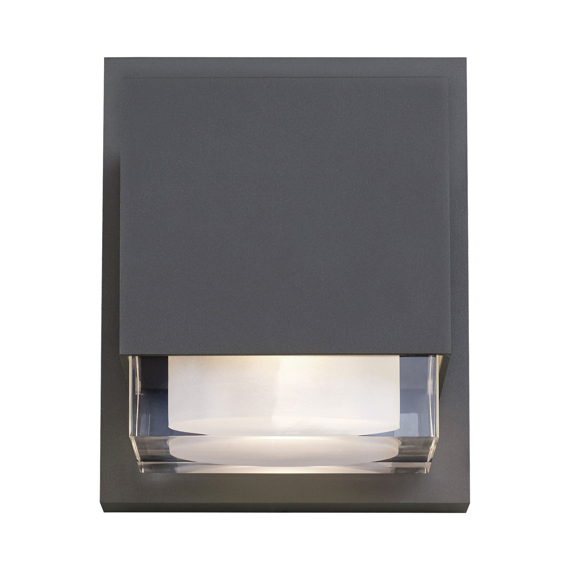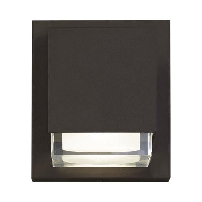 In dramatic contrast to the die-cast metal body, two symmetrical reveals cut from a solid piece of optically pure acrylic adorn the top and bottom of the Voto Downlight Outdoor LED Wall Light by Sean Lavin for Visual Comfort Modern. Beautiful LED light pours from the top and bottom of the thick-cut acrylic to provide ample illumination. Voto Downlight Outdoor LED Wall Light is also available with downlight or uplight only to meet the needs of all outdoor applications and Dark Sky considerations. Ideal for residential, hospitality, or commercial applications, the contemporary Voto Downlight Outdoor LED Wall Light design is available in two sizes (6 inches or 8 inches tall). This unique outdoor light fixture features a durable, powder coat finish available in either Charcoal or Bronze. Voto Downlight Outdoor LED Wall Light features stainless steel hardware and impact-resistant, UV stabilized clear acrylic lensing for added durability and stability.