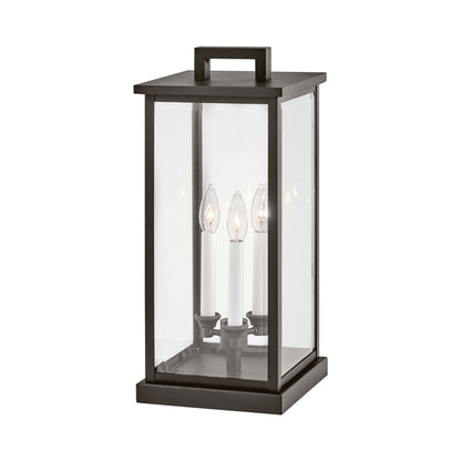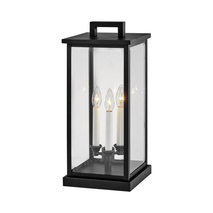 Modernize your outdoor space without sacrificing the traditional appeal you long for. Weymouth Outdoor Pier Mount Light's subtle yet overstated frame features a clean design; while its symmetrical lines evoke timeless elegance with a contemporary edge. The contrast candle sleeves in warm white balance the robust matte black aluminum cast frame. The beveled glass is an elegant touch to help refract the light. Weymouth is available in a Black finish.