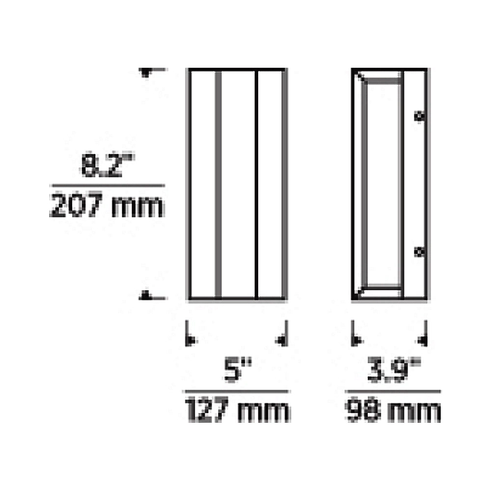 - 8.2-Inch: 5"W X 8.2"H; 3.9" Extension