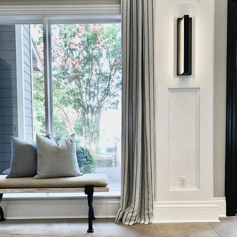 Modern crisp lines and a slim profile combine in the handsome Windfall Outdoor LED Wall Light from Visual Comfort Modern. Windfall fits most contemporary architecture while creating inviting exterior LED illumination. Indirect light bounces off the smooth, matte finish of the back plate to create a gentle glow for way-finding in outdoor corridors and walkways. Available in in two finishes Black or Silver. Windfall is 24 inches in length and can be mounted vertically or horizontally. ADA compliant.