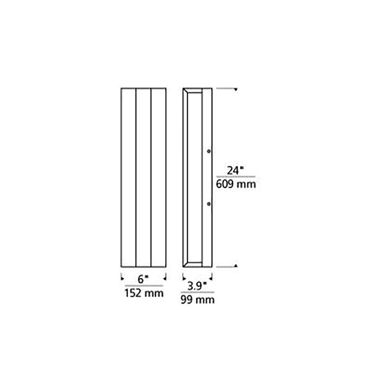 - 24-Inch: 6"W X 24"H; 3.9" Extension