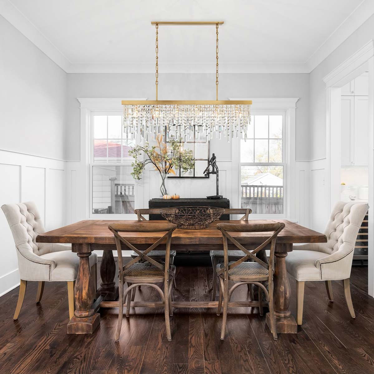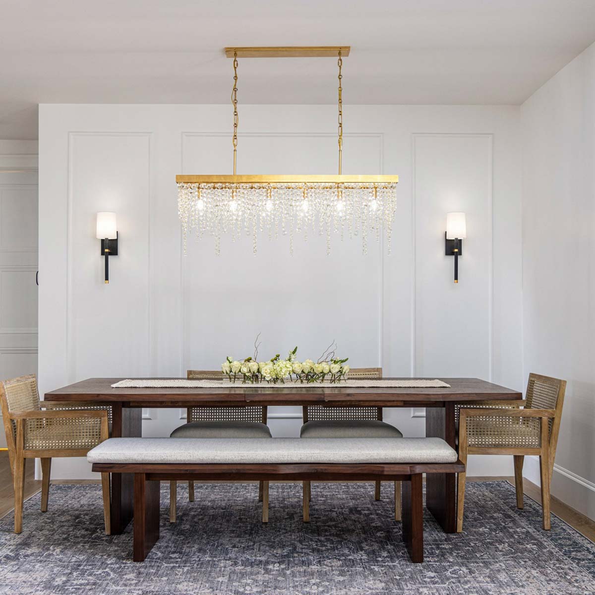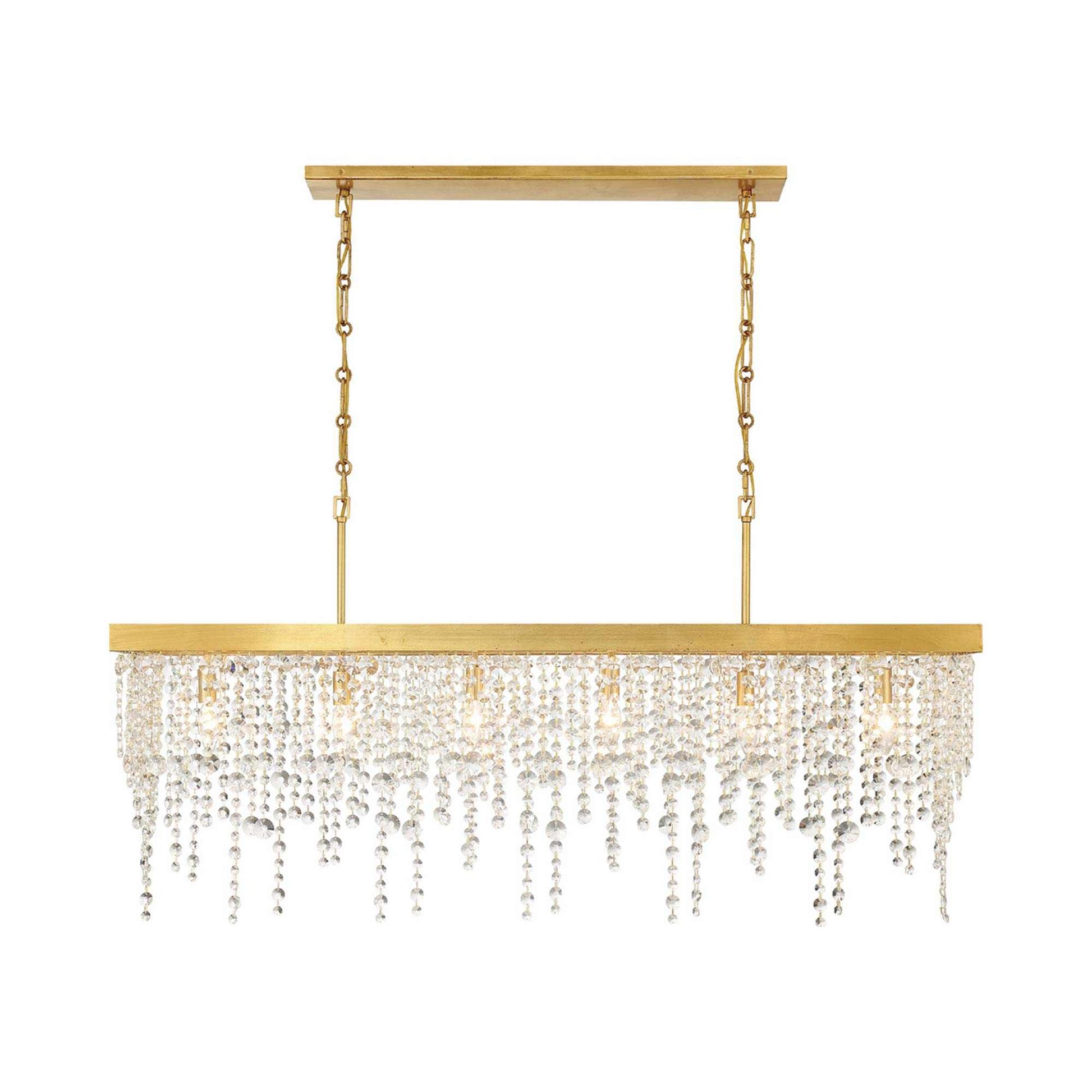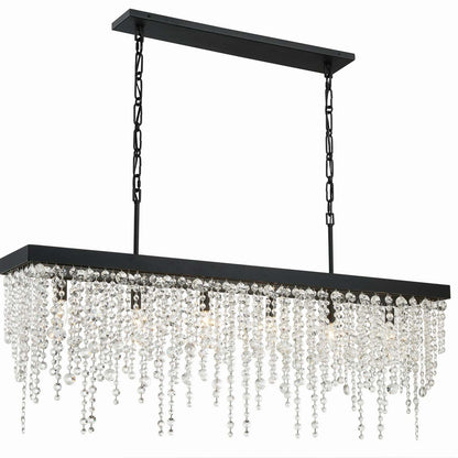 The Winham Linear Chandelier from Crystorama delivers a luscious highlight to kitchen islands, dining areas, and entryways, ideal for creating a look of frosted elegance. This fixture is both contemporary and transitional with its metal framing interjecting a hint of industrial flavor. Dangling strands of delicate, sparkling crystal beads bring an exquisite ambiance to any setting.