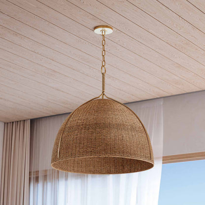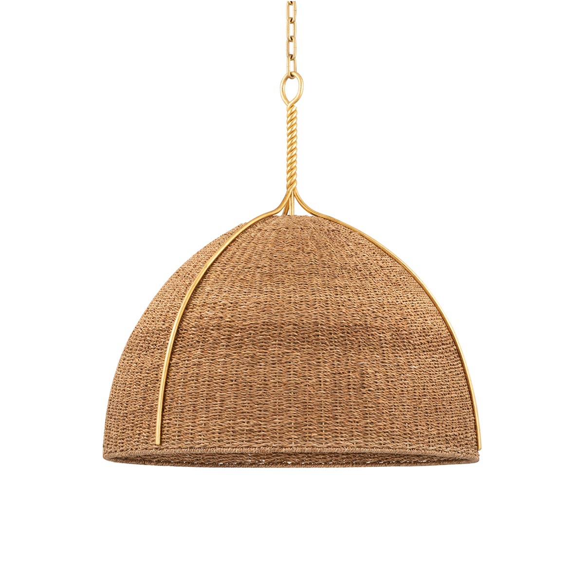 Celebrate the beauty and intricacy of nature with the Woodlawn Pendant Light from Hudson Valley Lighting. Superb in its texture and simplicity, the pendant features a vintage gold leaf finish accentuating its ornately woven shade, which is crafted from beautiful Lampakanai rope.