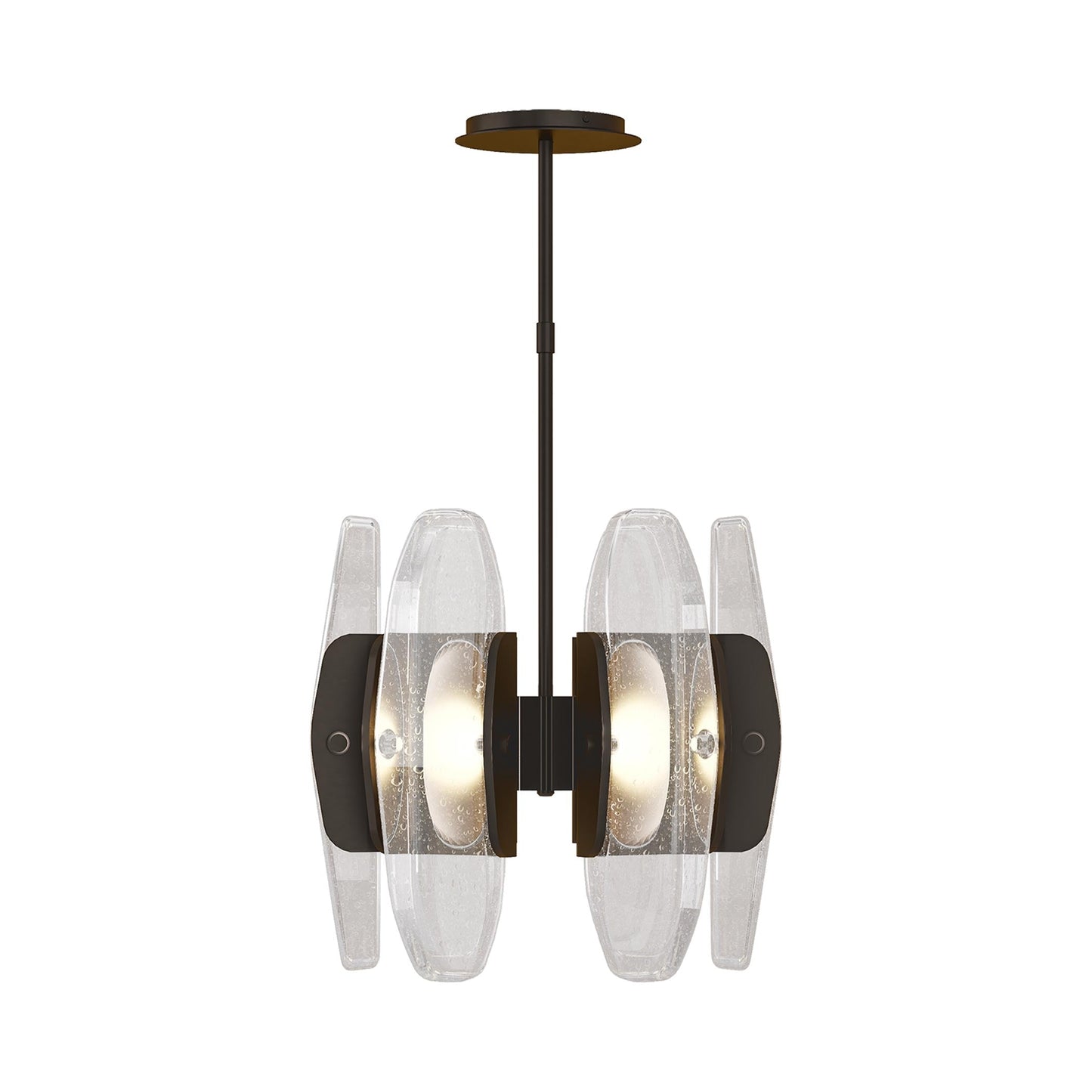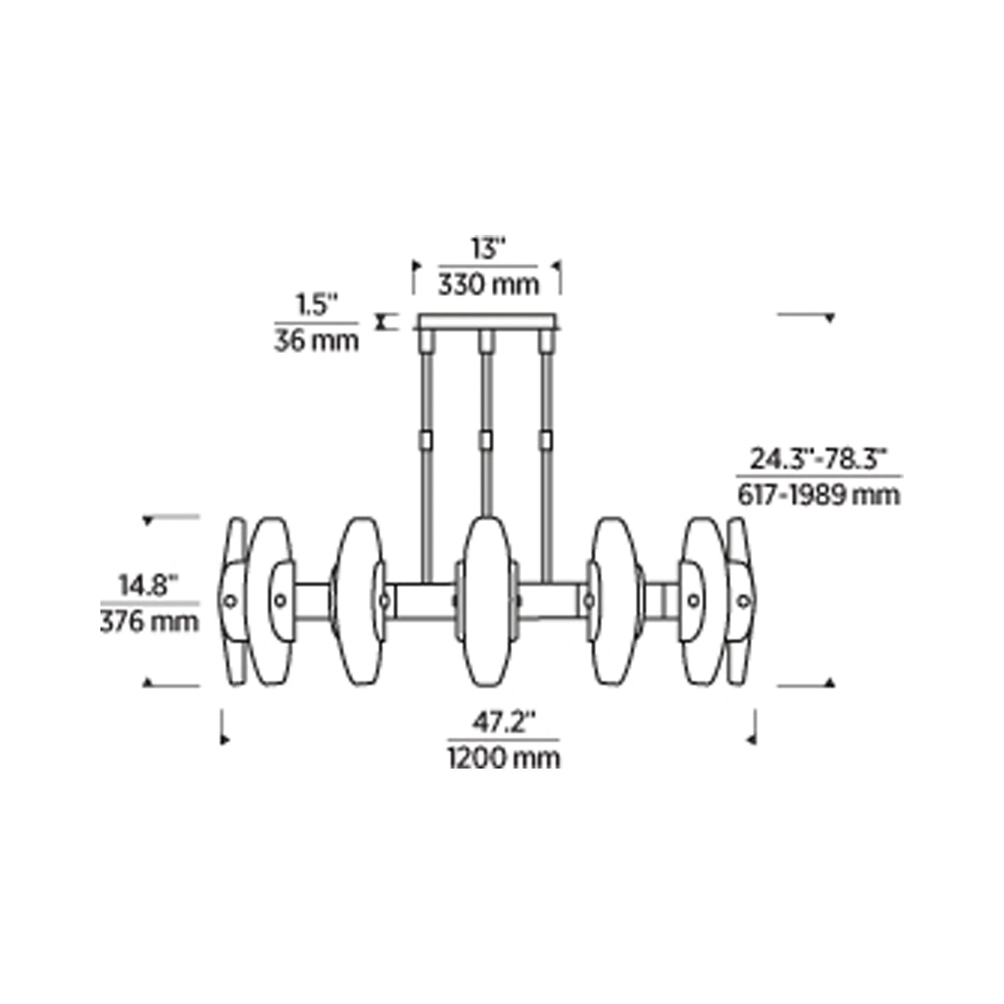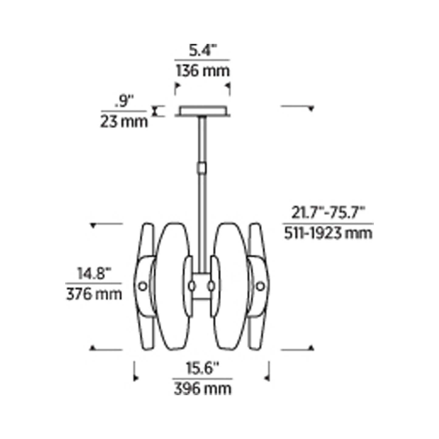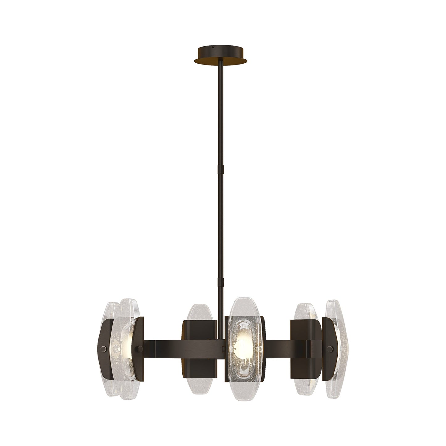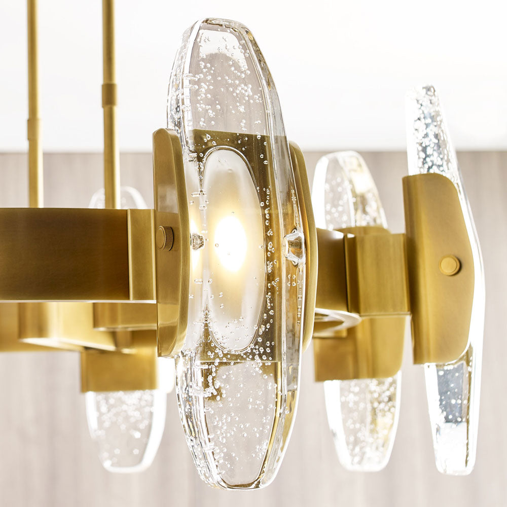 The Wythe LED Chandelier by AvroKO for Visual Comfort Modern presents a strong impression with smooth diffusing light in its most honest and simplest form. It is created from the marriage of industrial elements and the raw natural expression of glass. The cylindrical brass structure holds cast glass that is lit to highlight the natural fissures and imperfections from the casting process. This fixture proves its distinction over time, aging with elegance and becoming unified with the place it intends to call home.