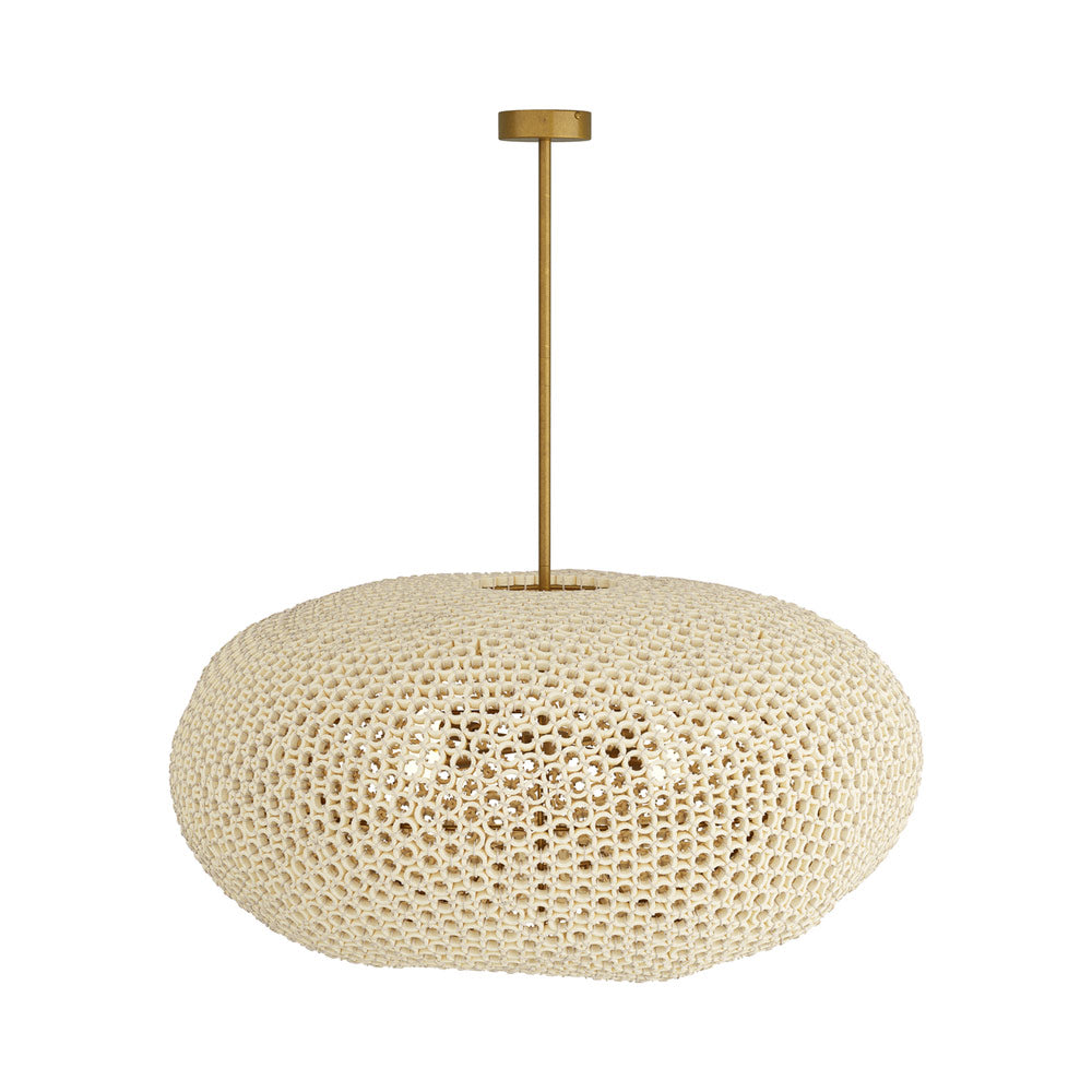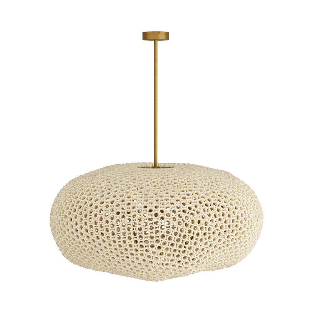 Lean on a boho-inspired design with organic and easy artistry. White beechwood hand-carved rings create a slightly abnormal shade as the Yara Chandelier from Arteriors offers earthy, easy flavor perfect for a casual space. Metal framing is warm and inviting, complementing the perforated donut shade that allows soft illumination to escape and light up any space.