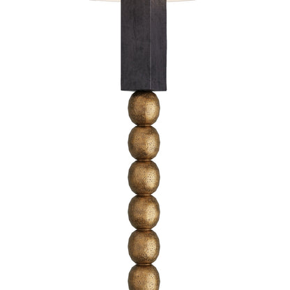 All eyes are on a chic, stunning look in lighting with design roots harkening back to the mid-20th century era. The Yonah Floor Lamp from Arteriors creates a textural quality with antique brass spheres stacked like beads, capped at both ends by ebonized mango wood blocks. Its purposeful artisan motif is not only versatile, but exceptional as a primary decor element.