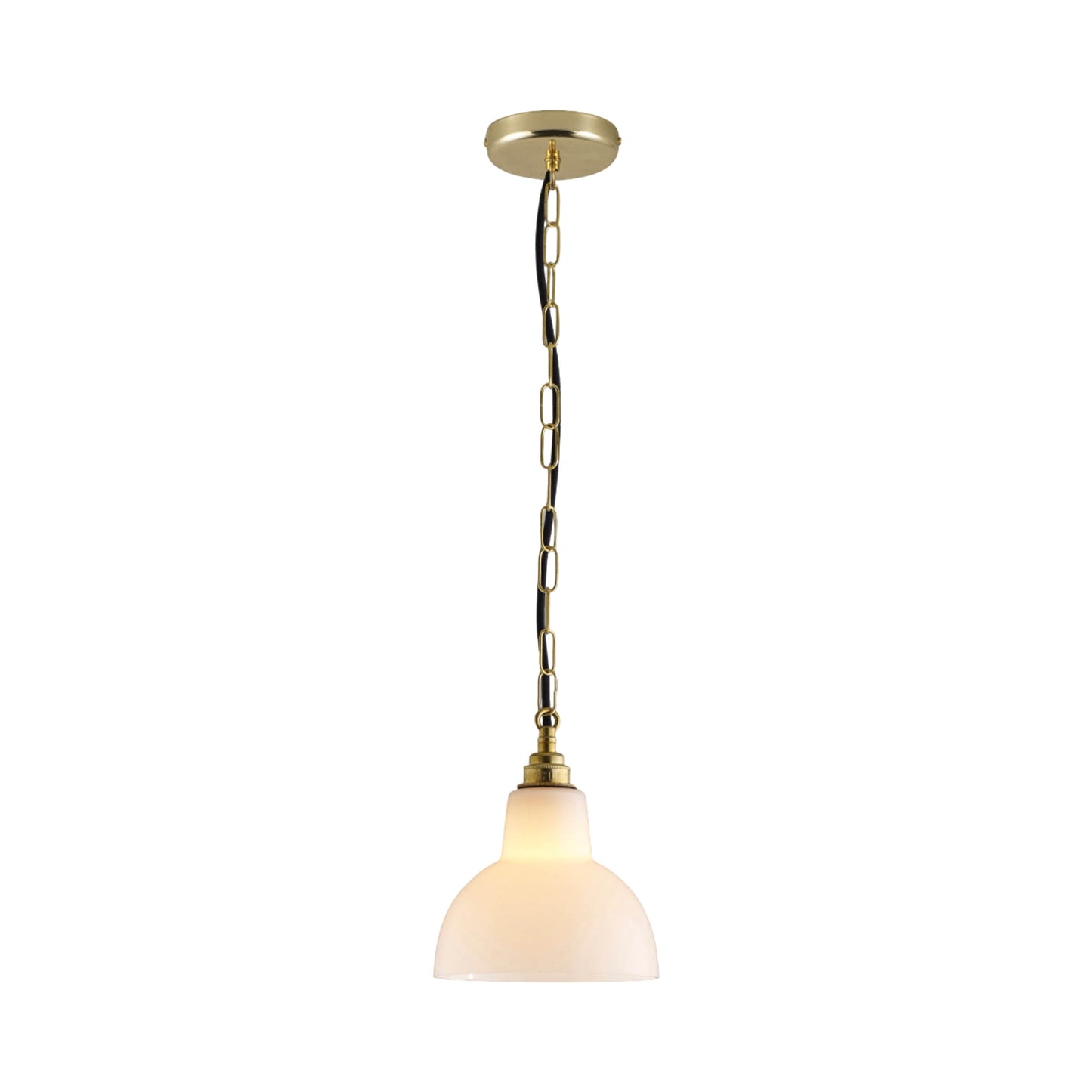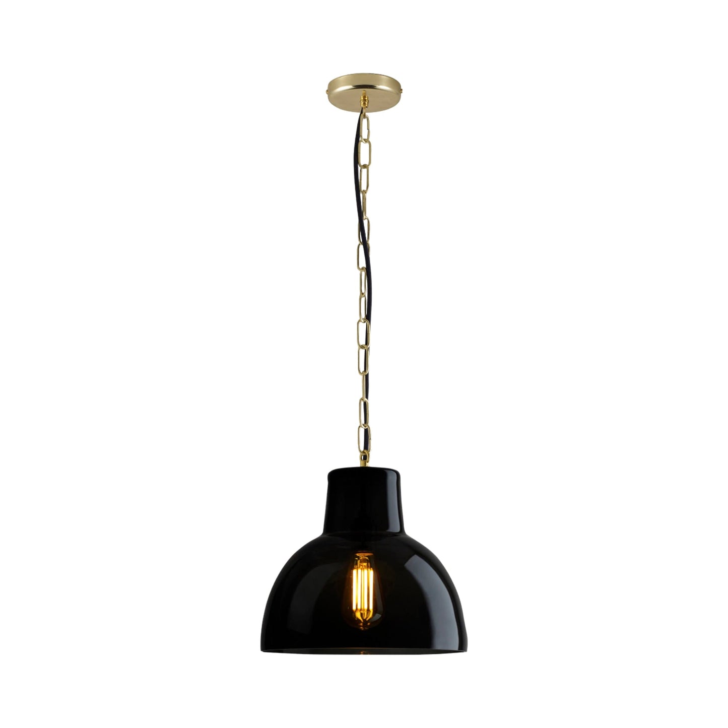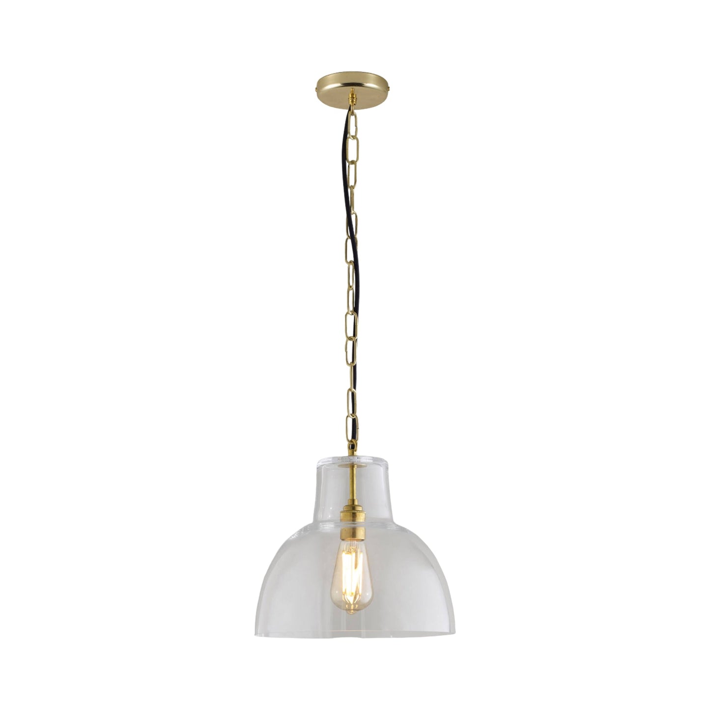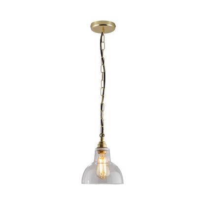 A certain level of decadence changes course in interior lighting as the York Pendant Light from Original BTC borrows from both contemporary and retro motifs. Iconic glass shapes into a dome shade, suspending from a charming large link suspension chain as a woven cord provides striking contrast. Metal accents add finishing touches to a fixture that highlights dining ensembles, foyers, and living rooms.