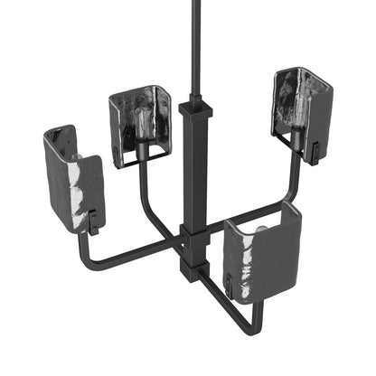 The Yosef Chandelier from Arteriors refines a concept blending geometry with abstract versatility, creating a fully contemporary look perfect for trending interior design concepts. Its forked arm fixture creates its own version of symmetry, with stark industrial inspiration reflected in steel, leather, and seedy slump glass diverting toward a more textural perspective.