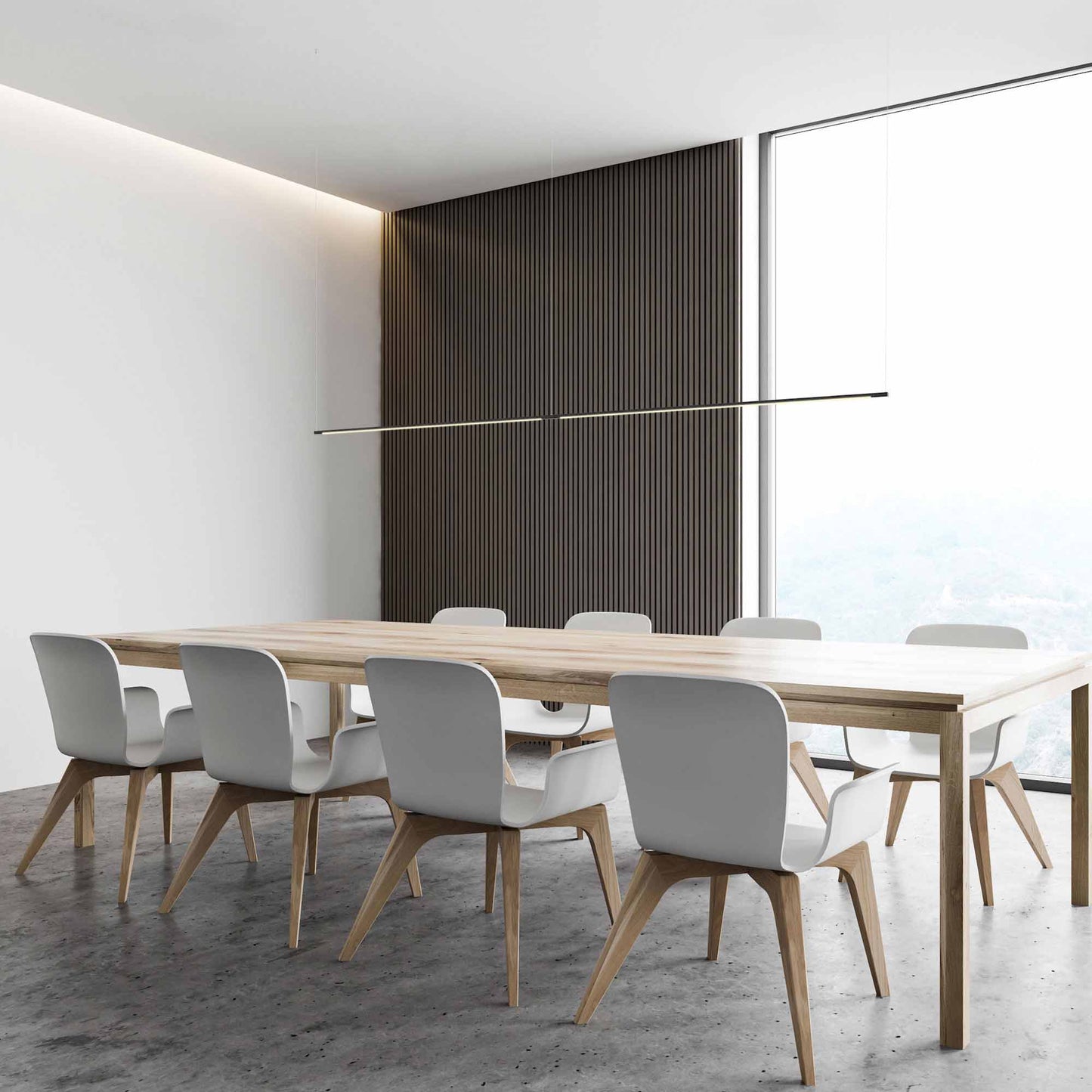 The Z-Bar Pendant line is an architectural lighting system featuring modular LED light bars. Choose from a variety of standard shapes, or design your own pendant using Koncept's dedicated web app. The "Linear" pendant is a minimal standard shape featuring 1-2 rotatable luminaires. Compatible with ELV wall dimmers.