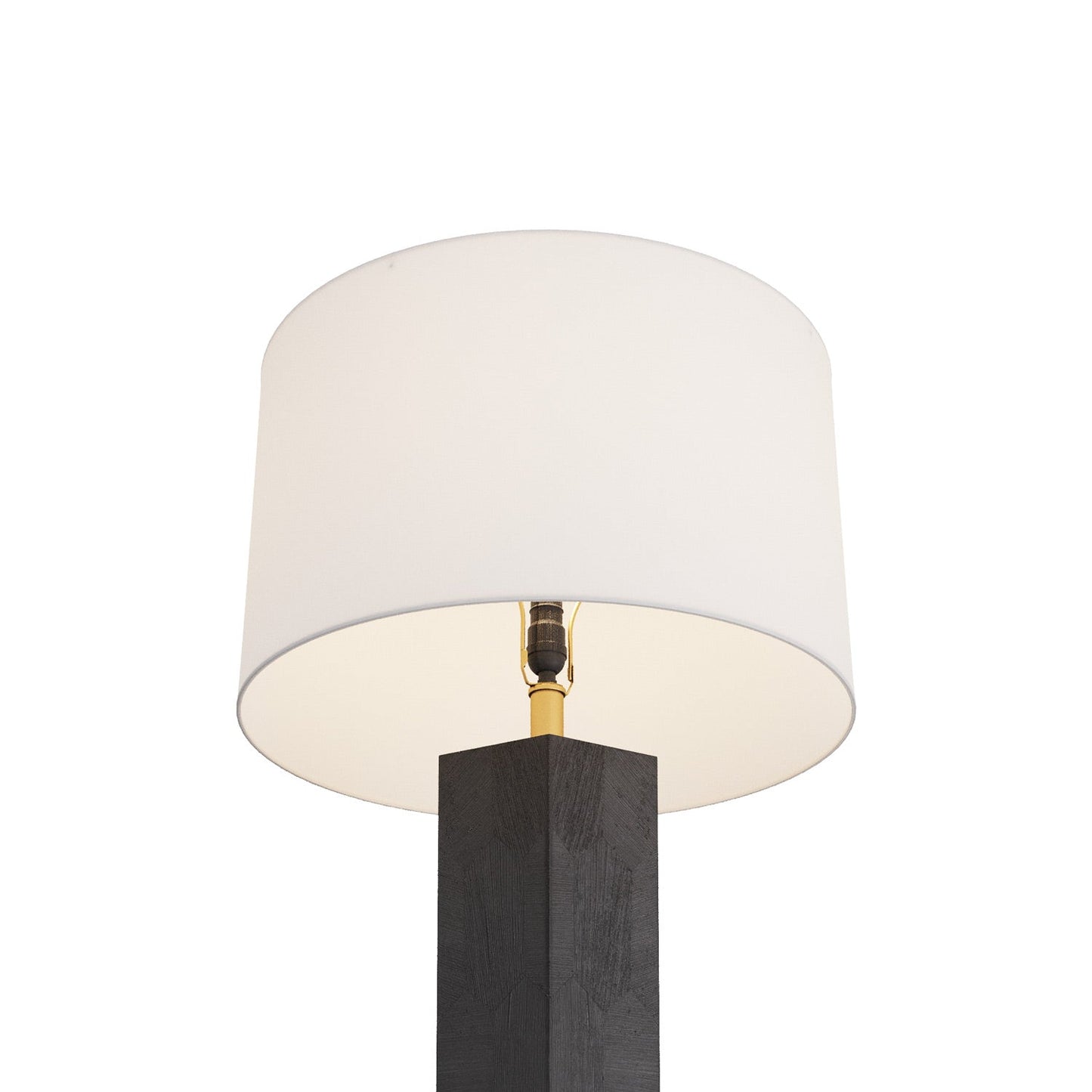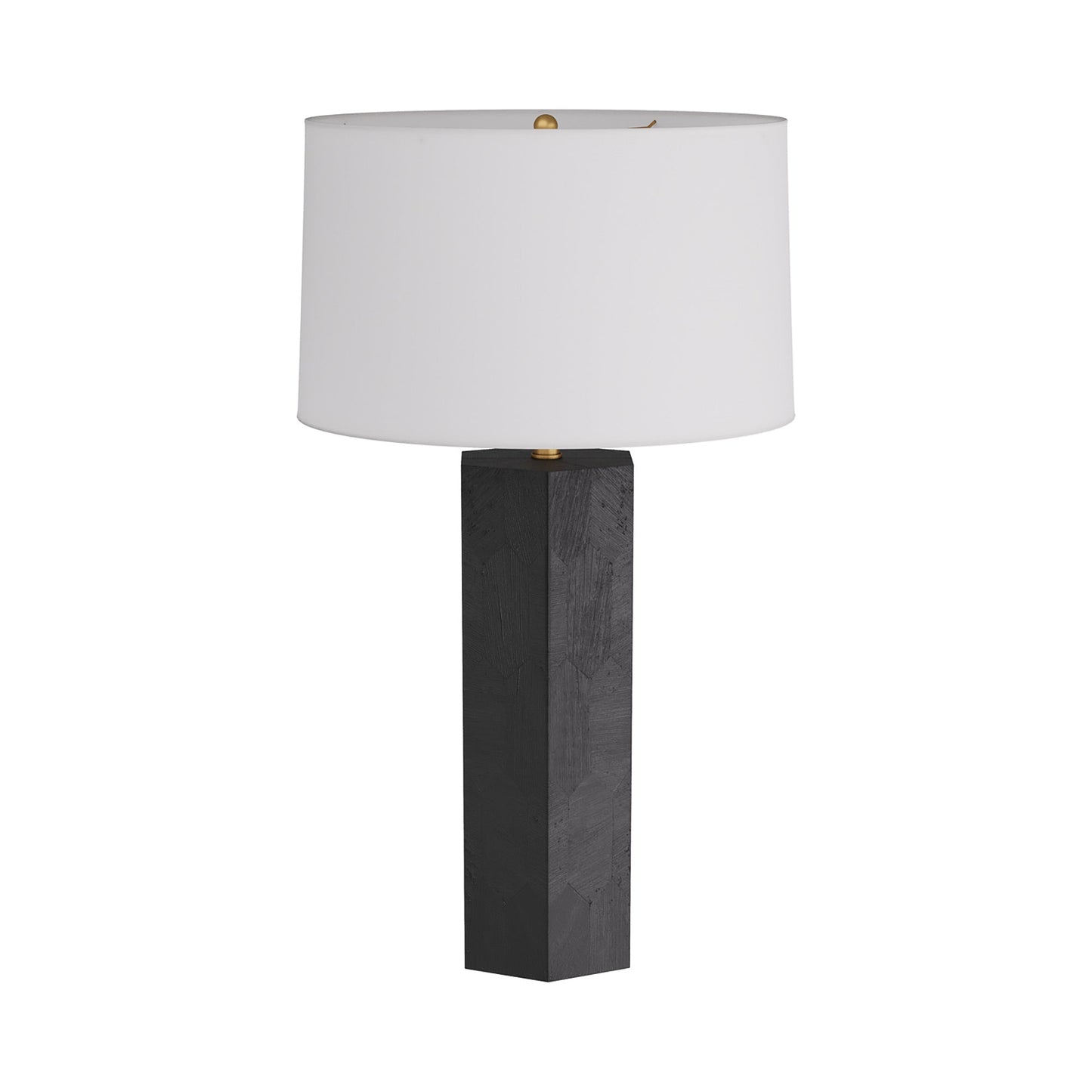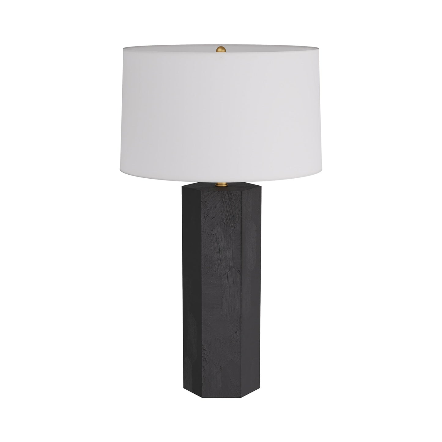 A crisp, refined geometric silhouette creates a visual statement of sophistication as the Zaya Table Lamp from Arteriors makes itself a standard-bearer in desktop and tabletop lighting. Revel in the dramatic ebony corn husk construction of a faceted body, with lush antique brass accents and a soft off-white linen shade. This timeless lamp is a plus that works in a host of settings.