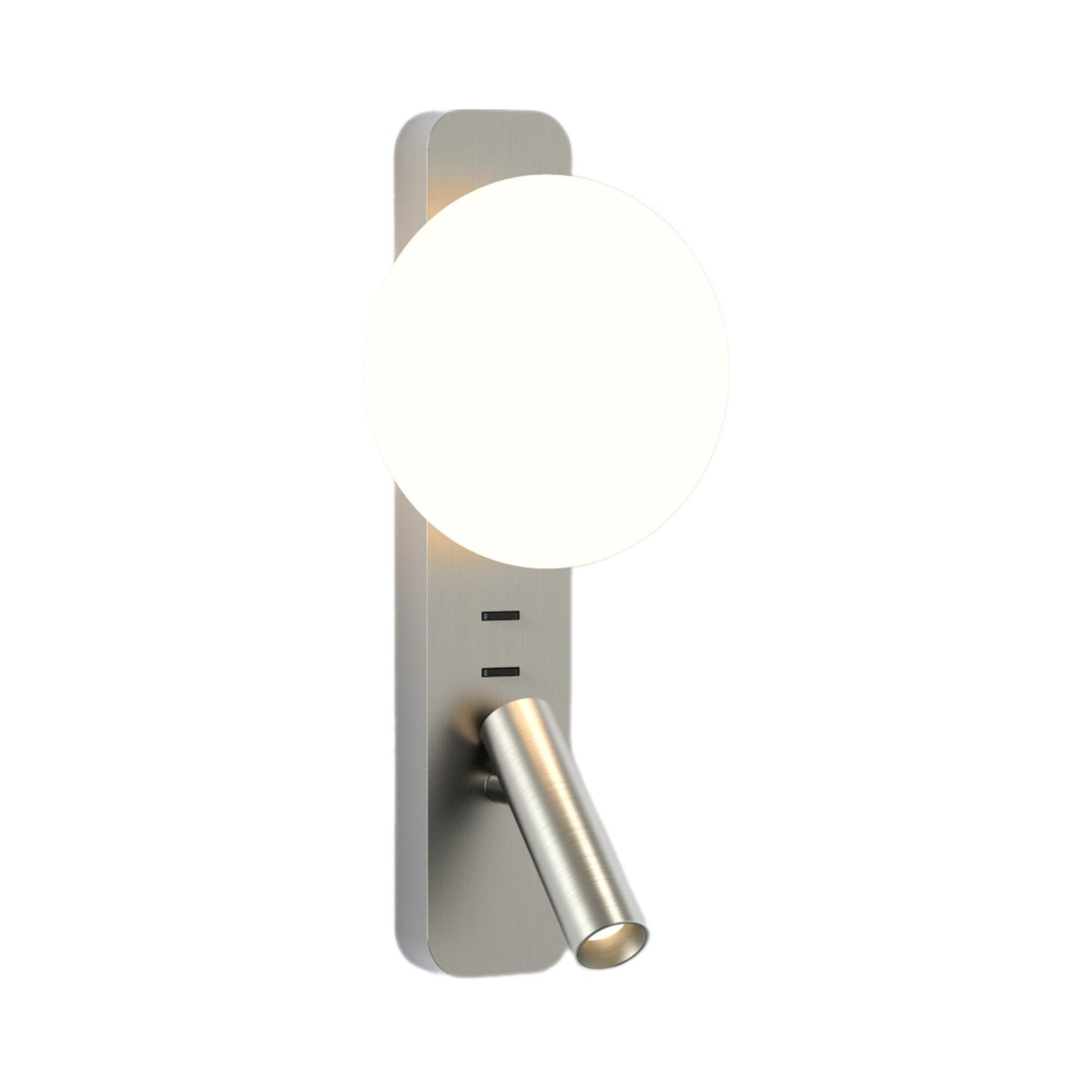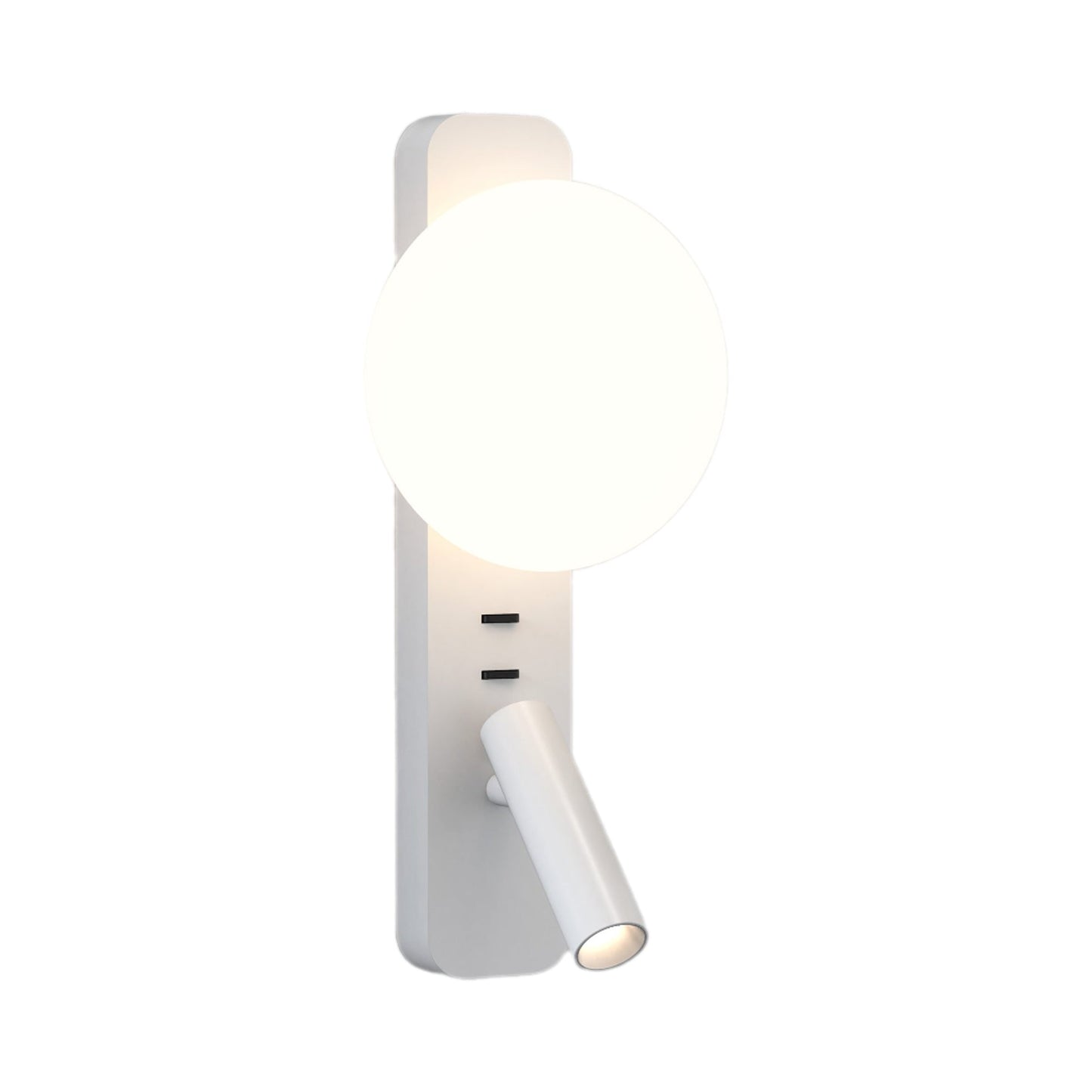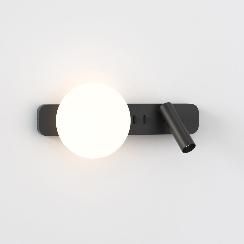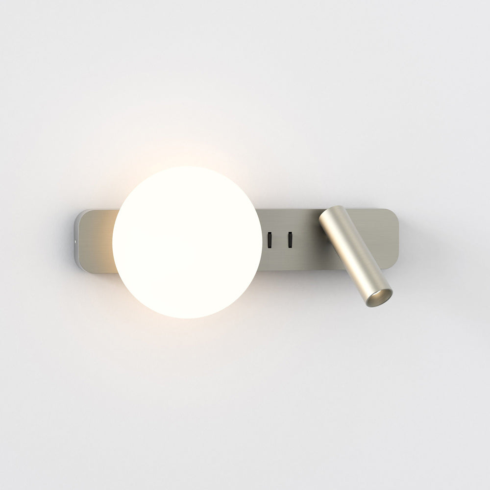 A notable mix of design motifs moves from charming traditional to updated modern as the Zeppo Reader Wall Light from Astro Lighting provides sufficient ambient lighting. A festive design blends metal framing with a flattened orb shade, embellished with an adjustable reading light making this fixture a superb choice for bedside use in a residential or hospitality setting.