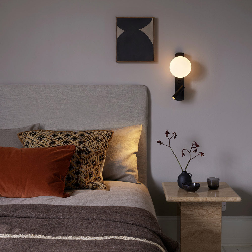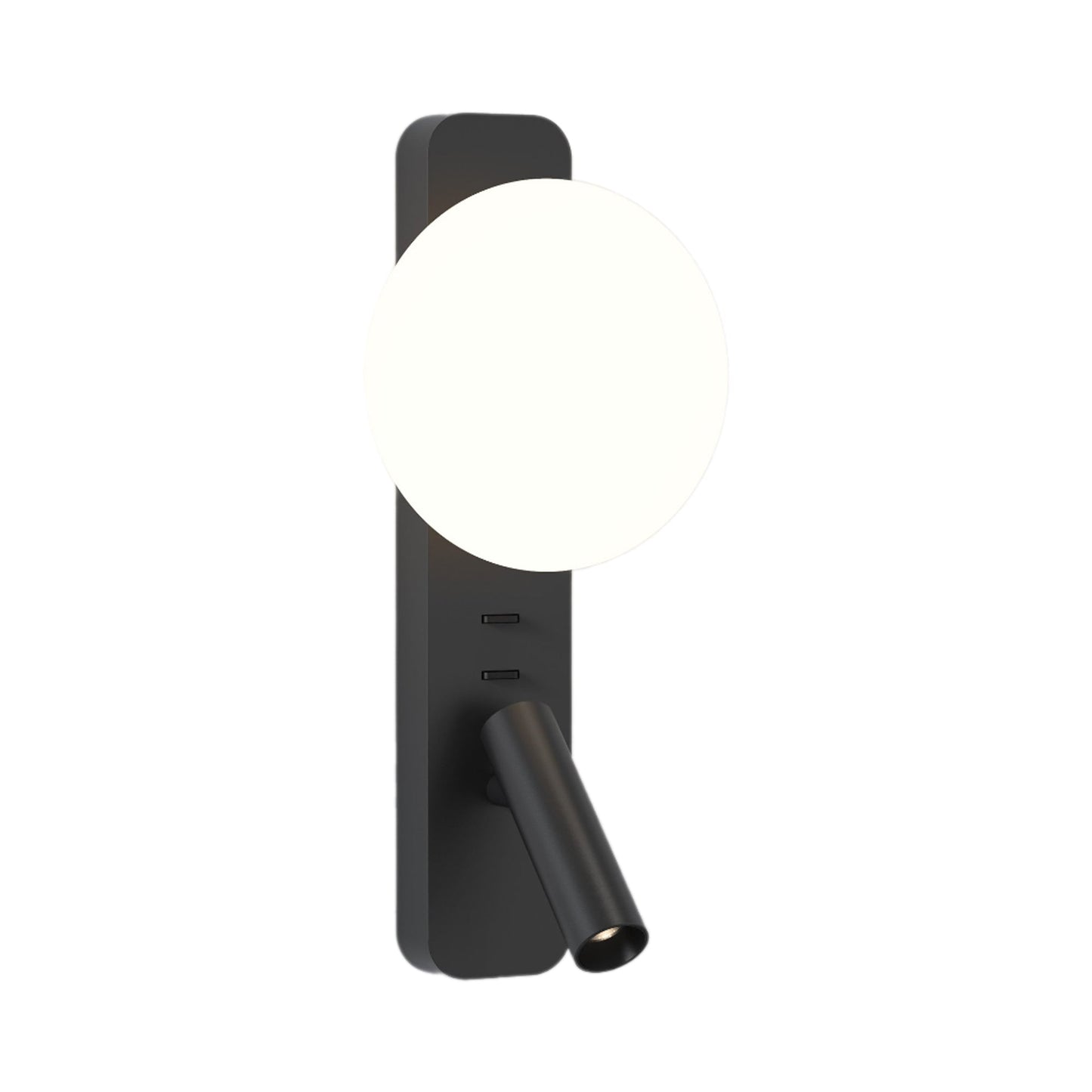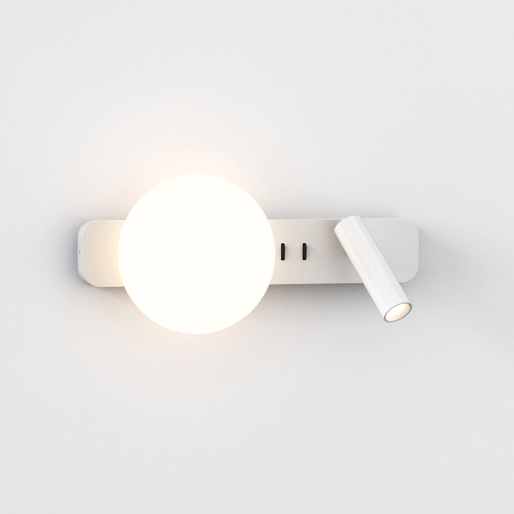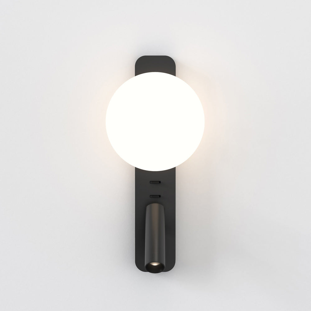 A notable mix of design motifs moves from charming traditional to updated modern as the Zeppo Reader Wall Light from Astro Lighting provides sufficient ambient lighting. A festive design blends metal framing with a flattened orb shade, embellished with an adjustable reading light making this fixture a superb choice for bedside use in a residential or hospitality setting.