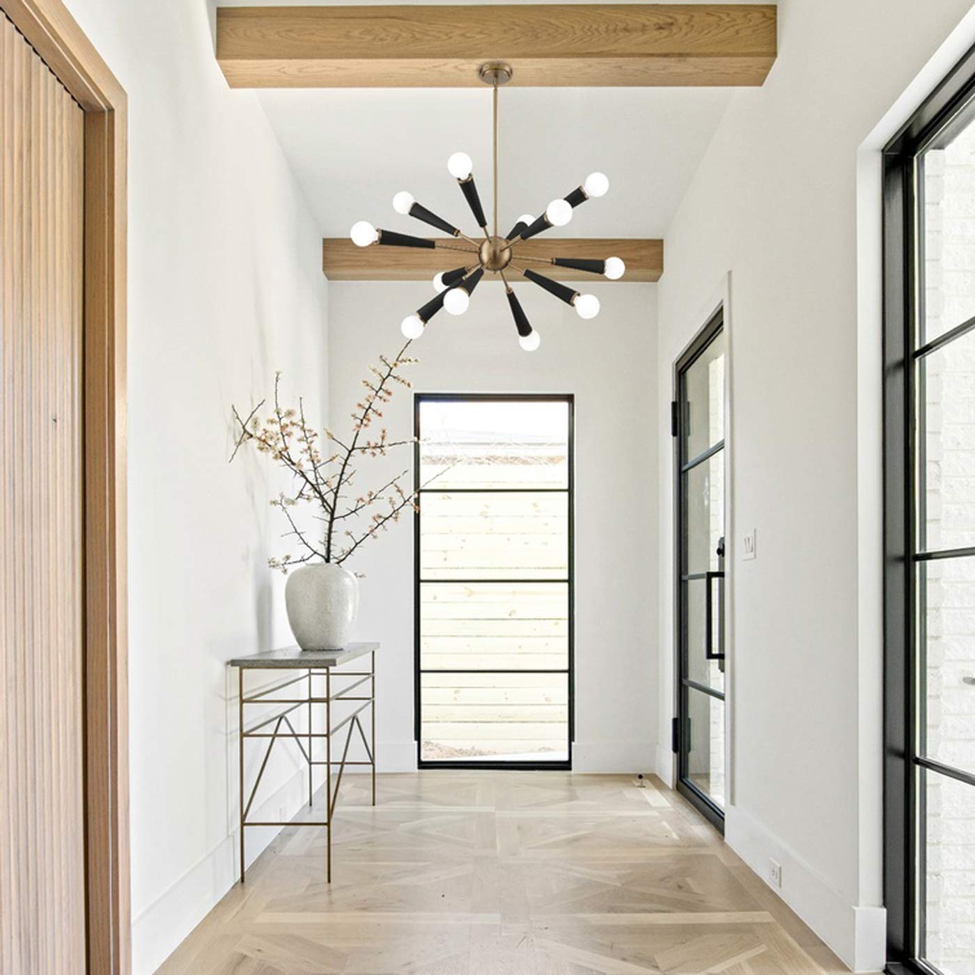 An off-the-charts design motif brings stunning character to the Zodiac Chandelier from Crystorama. Its reworked version of a Sputnik design sends protruding metal arms in multiple directions, capped with slender conical shades. A mix of finishes reinforce a dramatic look borrowing from 1950s studio inspiration.